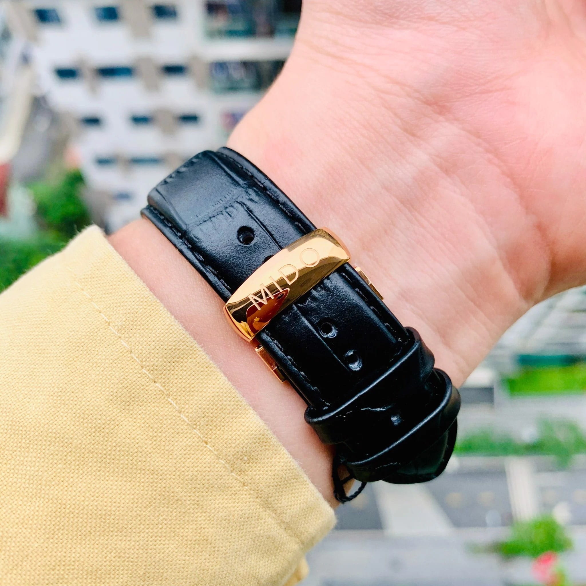 Мужские швейцарские механические часы Mido Belluna Gent M024.407.36.031.09, механический механизм (автоматический калибр) с высокой точностью. Сапфировое стеклоСапфировое стеклоПрочный и надёжный материал из кристалла сапфира синтетического происхождения, характеризующийся особой твёрдостью и устойчивостью к царапинам и повреждениям. устойчивое к появлению царапин, обладающее высокой прозрачностью. Класс водозащиты: 50 метров, позволит защитить корпус от случайных брызг или капель дождя. Корпус часов изготовлен из стали PVDPVDУльтратонкое покрытие наносится в технике вакуумного напыления, сочетает в себе нитрид титана особой прочности со слоем золота или оксида хрома. Несёт в себе декоративную или защитную функцию.. Застёжка бабочка с кнопкамиЗастёжка "бабочка"Такой вид застёжки дополняется предохранителями, помогающими избежать случайного раскрытия браслета. Обладают изящным исполнением. .