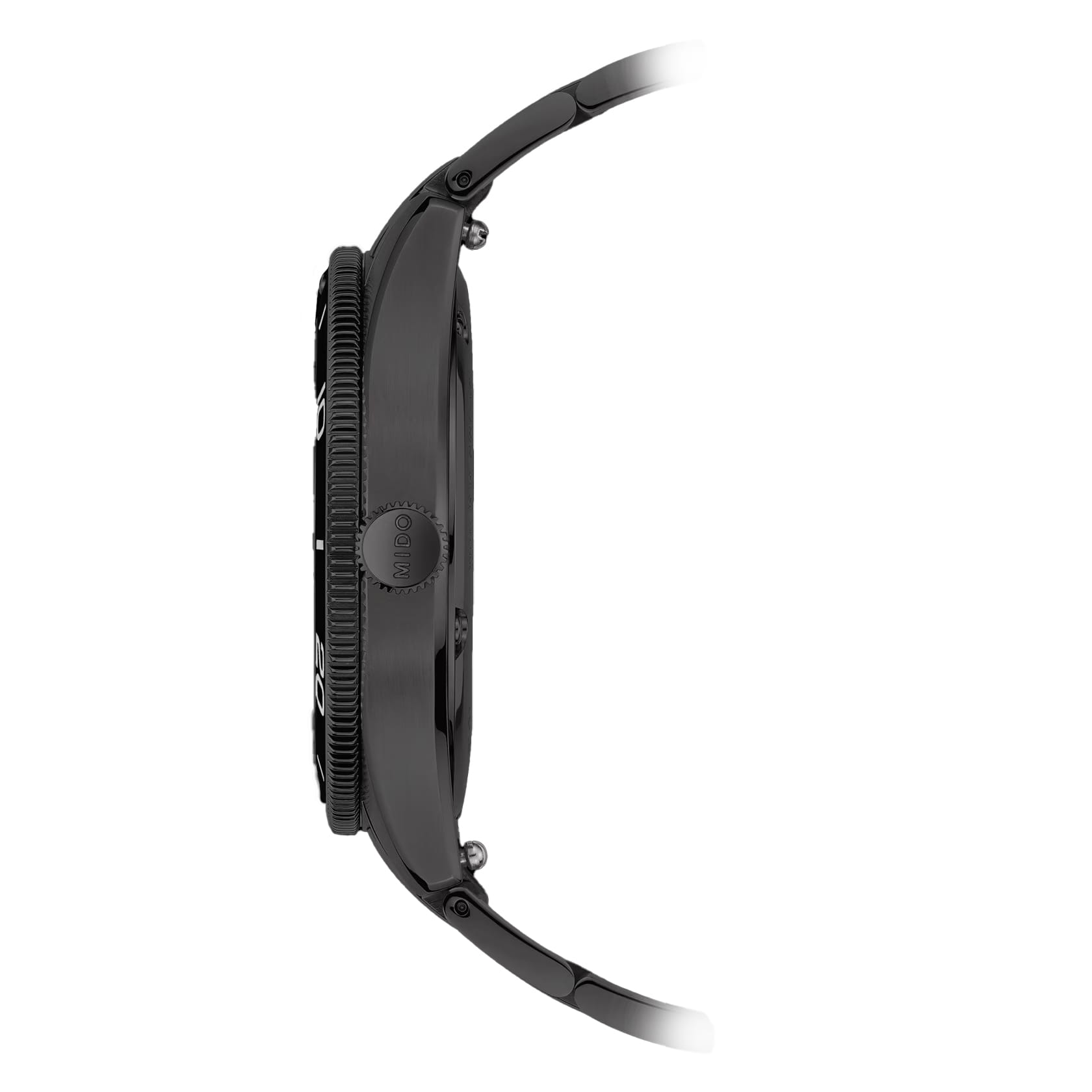 Мужские швейцарские механические часы с сапфировым стеклом Mido Ocean Star 39 M026.907.37.051.00, механический механизм (автоматический калибр) с высокой точностью. Сапфировое стеклоСапфировое стеклоПрочный и надёжный материал из кристалла сапфира синтетического происхождения, характеризующийся особой твёрдостью и устойчивостью к царапинам и повреждениям. устойчивое к появлению царапин, обладающее высокой прозрачностью. Корпус часов изготовлен из стали. Вращающийся безельБезельВнешний ободок, закрепляющий стекло. В спортивных часах так называется поворотное кольцо с делениями на циферблате, выполняет роль таймера – замеряет отрезки времени на шкале. Неподвижный безель – элемент декора. Однонаправленно вращающийся безель на дайверских часах позволяет фиксировать моменты погружения и выныривания на поверхность. из нержавеющей стали с PVDPVDУльтратонкое покрытие наносится в технике вакуумного напыления, сочетает в себе нитрид титана особой прочности со слоем золота или оксида хрома. Несёт в себе декоративную или защитную функцию. покрытием и керамики с покрытием Superluminova. Циферблат украшают метки с бриллиантами. Стрелки с люминесцентным покрытиемЛюминесцентное покрытиеПозволяет считывать показания времени в темноте. Производители наносят на стрелки, часовые индексы, безель или поверхность циферблата светонакопительный состав, дающий холодное свечение.. Окошко даты в положении 3 часов. Класс водозащиты: 200 метров, позволит плавать, нырять и заниматься другими водными видами спорта.