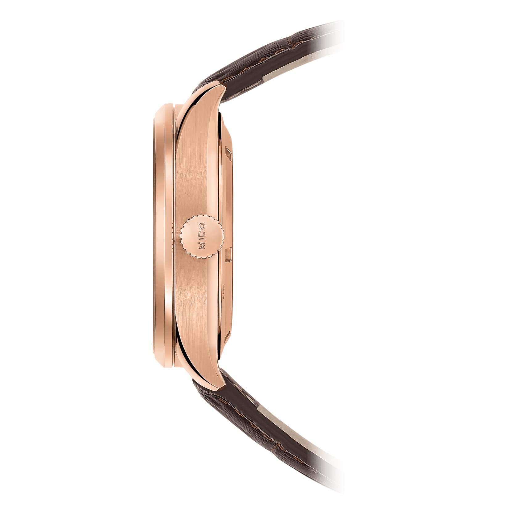 Мужские швейцарские механические часы с функцией второго часового пояса Mido Multifort Dual Time M038.429.36.061.00 оснащена эксклюзивным механизмом Группы Swatch – калибром Calibre 80 с автоматическим подзаводом и функцией GMT, механический механизм (автоматический калибр) с высокой точностью. Сапфировое стекло устойчивое к появлению царапин, обладающее высокой прозрачностью. Класс водозащиты: 100 метров, позволит плавать, нырять и заниматься другими водными видами спорта. Корпус часов изготовлен из стали, золотого цвета. Сохранив верность фирменному стилю коллекции Multifort, мастера переосмыслили в современном ключе ее эстетические коды: так, новые часы украшает более широкий декор «Женевские полосы», придающий дизайну лаконичность и улучшающий считываемость показаний.