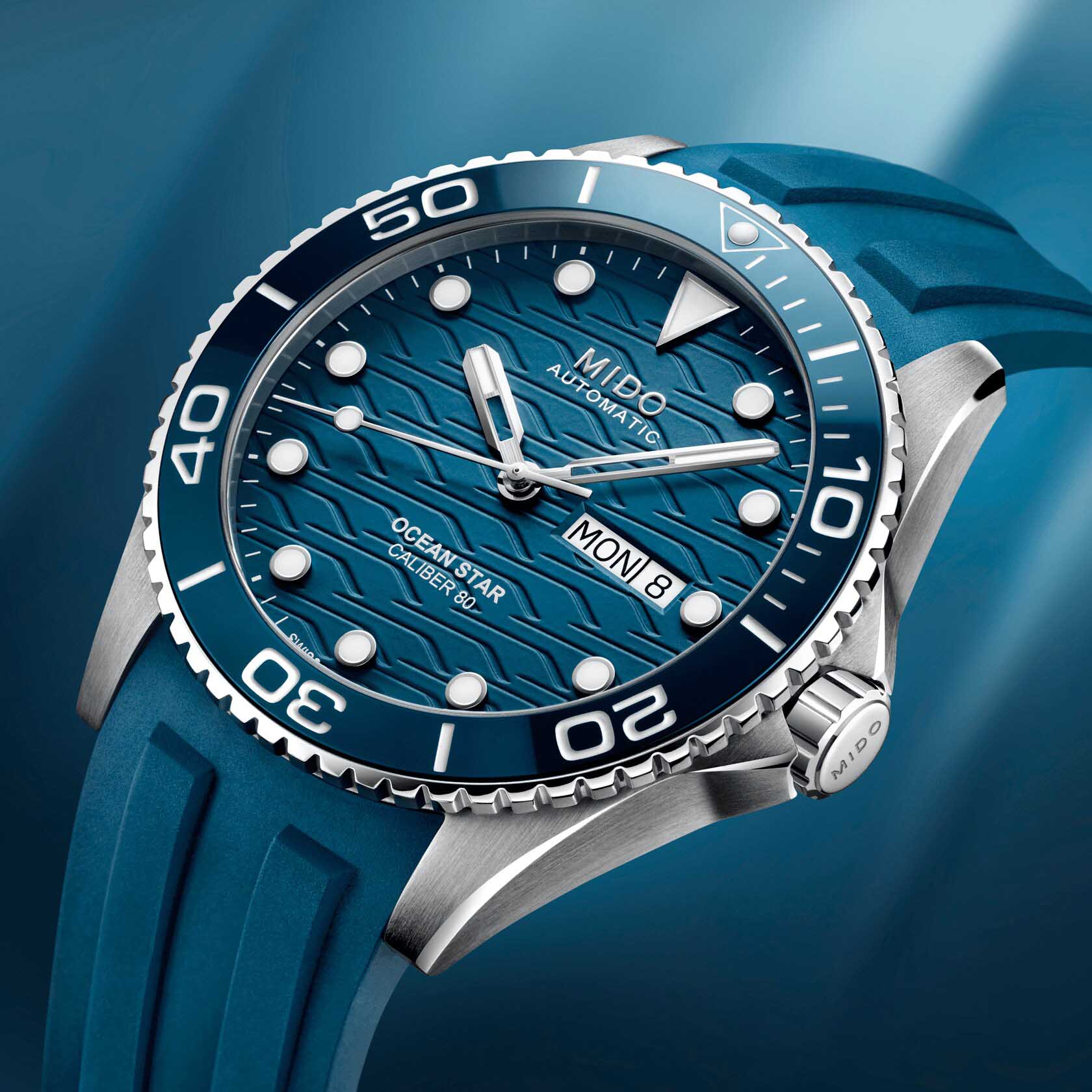Часы MIDO Ocean Star 200C (артикул M042.430.17.041.00) сочетают элегантный дизайн и высокую функциональность, подходя как для повседневного ношения, так и для водных приключений. Корпус диаметром 42,5 мм выполнен из нержавеющей стали с водозащитой до 20 бар (200 метров). Однонаправленная вращающаяся безель, завинчивающиеся заводная головка и задняя крышка подчёркивают практичность. Синий циферблат с волнообразным узором оснащён накладными часовыми метками и стрелками с покрытием Super-LumiNova®Люминесцентное покрытиеПозволяет считывать показания времени в темноте. Производители наносят на стрелки, часовые индексы, безель или поверхность циферблата светонакопительный состав, дающий холодное свечение.. Окошки даты и дня недели расположены в положении «3 часа». Циферблат защищён сапфировым стекломСапфировое стеклоПрочный и надёжный материал из кристалла сапфира синтетического происхождения, характеризующийся особой твёрдостью и устойчивостью к царапинам и повреждениям. с двусторонним антибликовым покрытием.