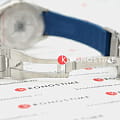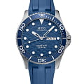 Ремешок из синего каучука с раскладывающейся застёжкойРаскладная застёжкаТакой тип застёжки используется только на браслетах из металла. Она никогда не раскрывается полностью, происходит разделение на 2 и более частей. Раскладывающая застёжка снизит вероятность потери часов к минимуму. и удлинением для дайвинга обеспечивает комфортное и надёжное ношение.