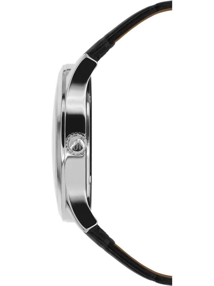 Ремешок выполнен из натуральной кожи чёрного цвета, обеспечивая комфорт при носке.  Толщина корпуса составляет 11 мм, что придаёт часам солидный вид.  Гарантия на модель составляет 2 года.