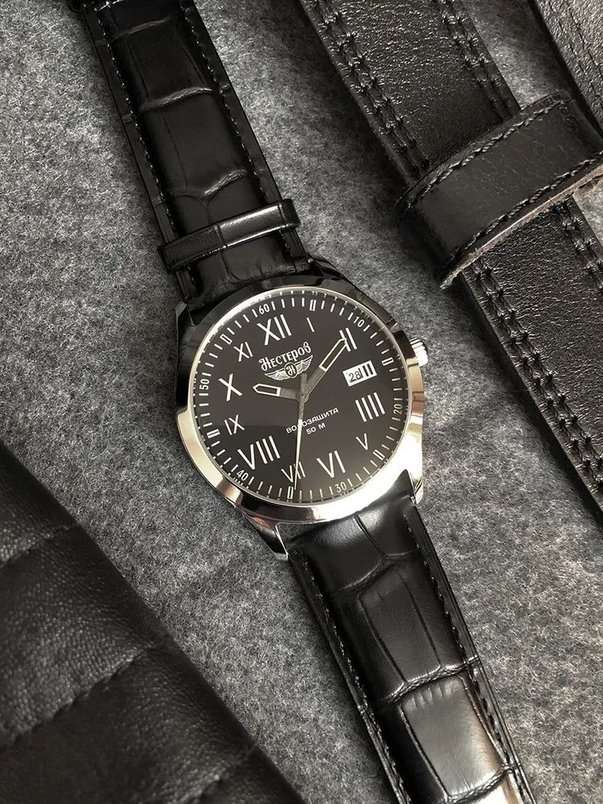 Модель Нестеров H0959F02-03E — это элегантные мужские часы, сочетающие в себе классический дизайн и надёжность.  Корпус диаметром 41 мм выполнен из нержавеющей стали, подчёркивая прочность и изысканность конструкции. Чёрный циферблат с римскими цифрами и стрелками, обеспечивает отличную читаемость в любых условиях.