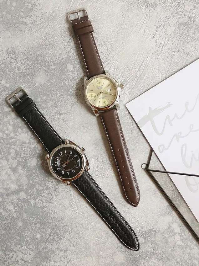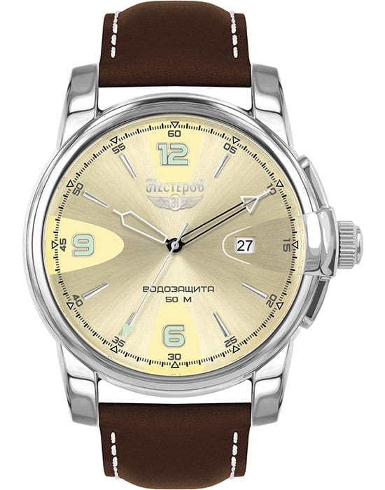 Ремешок выполнен из натуральной кожи коричневого цвета, обеспечивая комфорт при носке. Толщина корпуса составляет 13 мм, что придаёт часам солидный вид.