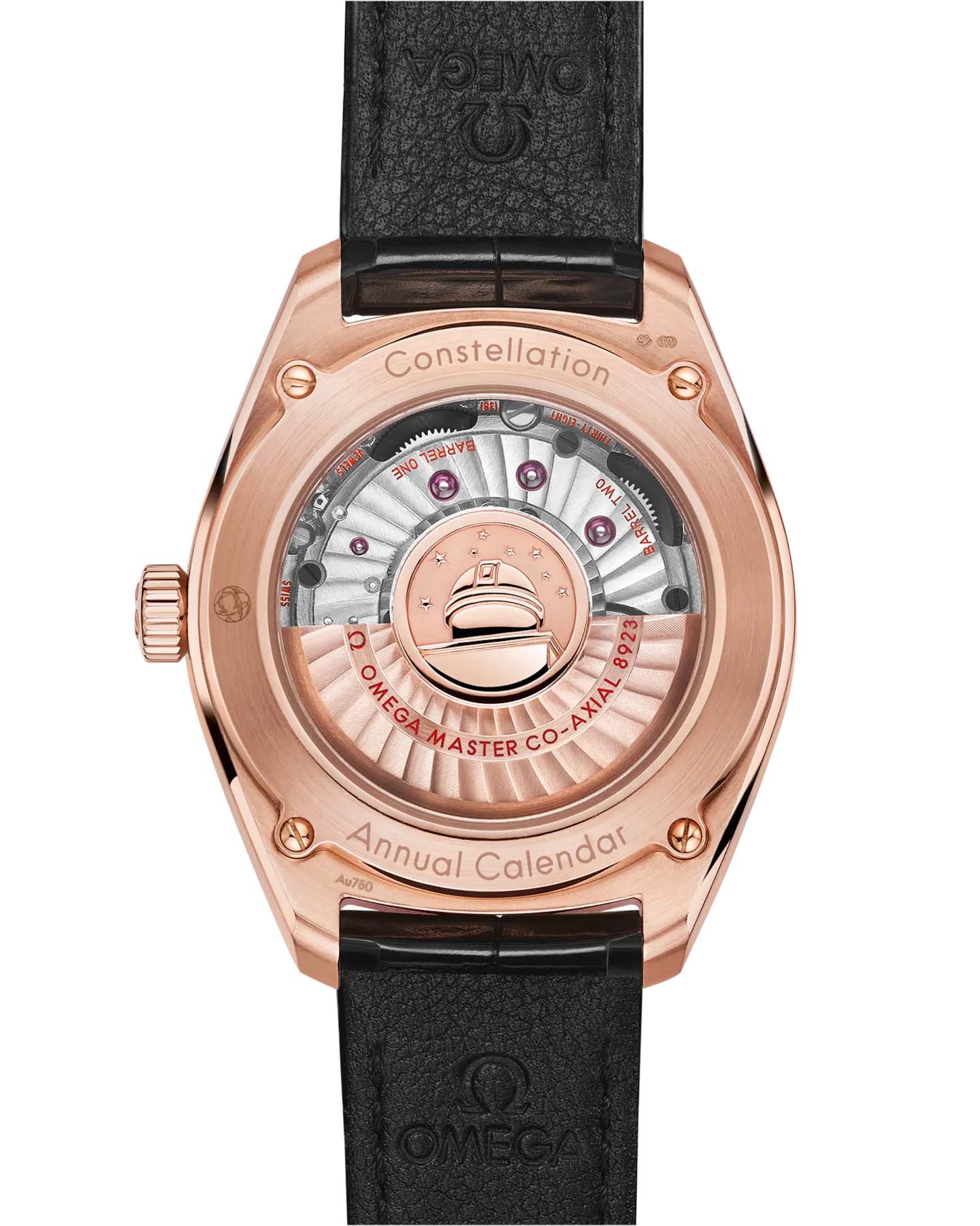 Sedna™ с фасетками украшены черным ониксом. Часы с черным глянцевым кожаным ремешком оснащены коаксиальным хронометром OMEGA Master Chronometer Annual Calendar Calibre 8923 с революционной антимагнитной технологией.