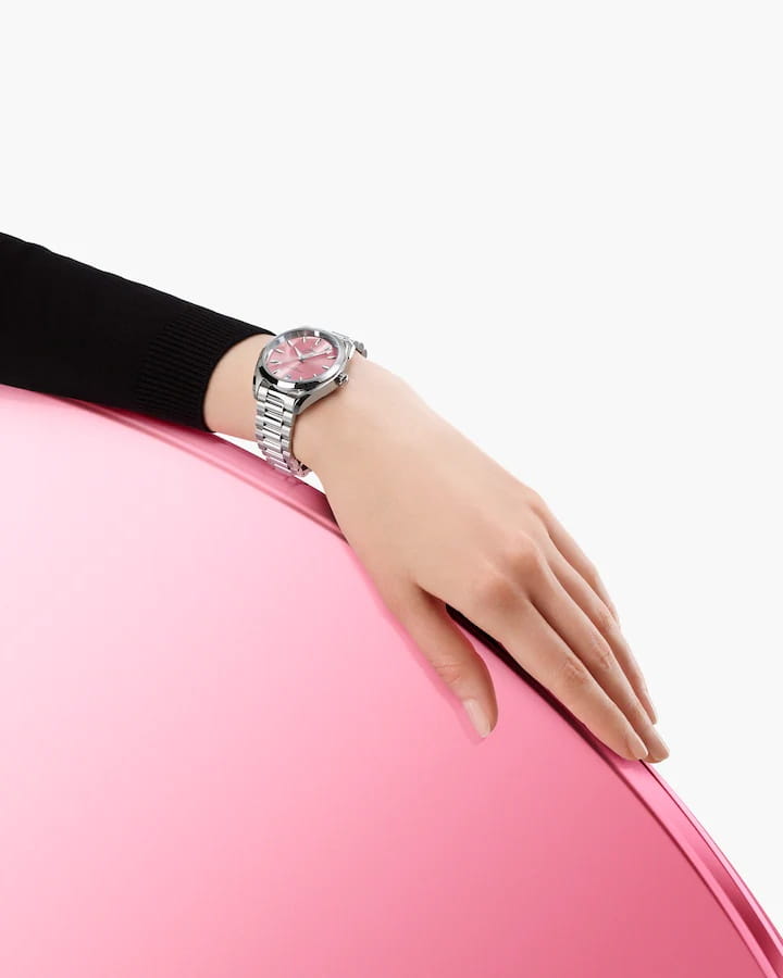 Omega Seamaster Aqua Terra выполнены в симметричном корпусе из полированной нержавеющей стали с завинчивающейся задней крышкой, украшенной волновым узором. Циферблат изготовлен из латуни и обработан методом солнечной шлифовки от центра к краям. Циферблат дополнен окошком даты на 6 часах, стрелками и метками из 18K белого золота с алмазной полировкой для высокой контрастности и читаемости. Логотип OMEGA также выполнен в этом же материале. Калибр Omega 8800 сертифицирован как Master Chronometer — гарантия высочайшей точности и устойчивости к магнитным полям. Запас хода составляет 55 часов. Защиту циферблата обеспечивает сапфировое стеклоСапфировое стеклоПрочный и надёжный материал из кристалла сапфира синтетического происхождения, характеризующийся особой твёрдостью и устойчивостью к царапинам и повреждениям. с антибликовым покрытиемАнтибликовое покрытиеСлой оксида металла в 0,13-0,3 микрон, благодаря которому стекло часов не бликует и не отражает свет. Антибликовое покрытие уменьшает отражение света в 10 раз, обеспечивая отличную читаемость показателей циферблата. с обеих сторон. Водозащита позволяет использовать часы в воде без риска повреждения. Часы установлены на браслет со скруглёнными звеньями и раскладной застёжкойРаскладная застёжкаТакой тип застёжки используется только на браслетах из металла. Она никогда не раскрывается полностью, происходит разделение на 2 и более частей. Раскладывающая застёжка снизит вероятность потери часов к минимуму.. Это сочетание премиального качества, технологичности и классического дизайна.