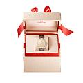 Часы Omega Seamaster Aqua Terra выполнены в симметричном корпусе из полированного 18K Moonshine™ золота с завинчивающейся задней крышкой, украшенной волновым узором. Безель инкрустирован бриллиантами, что добавляет модели роскошный акцент. Циферблат жёлтого цвета дополнен окошком даты и оформлен вручную с использованием техники гильоше, а также 12 бриллиантами по окружности. Стрелки выполнены из 18K Moonshine™ золота и оснащены люминесцентным покрытиемЛюминесцентное покрытиеПозволяет считывать показания времени в темноте. Производители наносят на стрелки, часовые индексы, безель или поверхность циферблата светонакопительный состав, дающий холодное свечение. Super-LumiNova для лучшей читаемости в темноте. Калибр Omega 8807 сертифицирован как Master Chronometer — гарантия высочайшей точности и устойчивости к магнитным полям. Запас хода составляет 55 часов. Защиту циферблата обеспечивает сапфировое стеклоСапфировое стеклоПрочный и надёжный материал из кристалла сапфира синтетического происхождения, характеризующийся особой твёрдостью и устойчивостью к царапинам и повреждениям. с антибликовым покрытиемАнтибликовое покрытиеСлой оксида металла в 0,13-0,3 микрон, благодаря которому стекло часов не бликует и не отражает свет. Антибликовое покрытие уменьшает отражение света в 10 раз, обеспечивая отличную читаемость показателей циферблата. с обеих сторон. Водозащита позволяет использовать часы в воде без риска повреждения. Часы установлены на кожаный ремешок коричневого цвета. Вес модели — около 87 грамм. Это сочетание премиального качества, технологичности и классического дизайна.