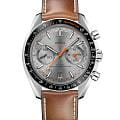Speedmaster Racing Master Chronometer в 44,25-мм корпусе из нержавеющей стали с коричневым кожаным ремешком представляет собой гармоничное сочетание автоспортивной эстетики и часового искусства. Черное керамическое кольцоБезельВнешний ободок, закрепляющий стекло. В спортивных часах так называется поворотное кольцо с делениями на циферблате, выполняет роль таймера – замеряет отрезки времени на шкале. Неподвижный безель – элемент декора. Однонаправленно вращающийся безель на дайверских часах позволяет фиксировать моменты погружения и выныривания на поверхность. с тахиметрической шкалойТахиметрРазмеченная шкала, располагается на ободке или безеле часов. Тахиметр позволяет рассчитать скорость на определённом участке пути, расстояние измеряется в километрах или милях. эффектно сочетает оранжевые надписи с высокотехнологичными цифрами из Liquidmetal™. Серый циферблат с радиальным сатинированием и характерной "спидометрной" минутной шкалой дополнен двумя счетчиками с родиевыми кольцами и окошком даты на 6 часах. Черненые и оранжевые стрелки создают выразительный контраст с чернеными индексами в форме стрел, покрытыми Super-LumiNovaЛюминесцентное покрытиеПозволяет считывать показания времени в темноте. Производители наносят на стрелки, часовые индексы, безель или поверхность циферблата светонакопительный состав, дающий холодное свечение.. В основе часов - прецизионный калибр OMEGA Co-Axial Master Chronometer 9900, сертифицированный институтом METAS, что гарантирует безупречную точность и надежность.