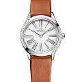 Mini Trésor – истинное воплощение женственности в коллекции OMEGA, где 26-мм корпус из нержавеющей стали украшен волнообразными рядами сверкающих бриллиантов, а заводная головка с алмазом в обрамлении красной гибридной керамики добавляет ноту игривого очарования. Куполообразный циферблат из белой эмали "Grand Feu" с сероватым оттенком и изящными римскими цифрами создает эффект воздушной легкости. Ремешок из кожи Novonappa золотистого цвета с фирменной застежкой Trésor подчеркивает роскошный характер модели. Внутри скрыт точный кварцевый механизм OMEGA 4061, дополненный зеркальной задней крышкой с металлизированным узором "Her Time" – идеальный баланс ювелирного искусства и часового мастерства.