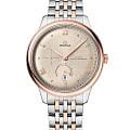 270-градусный индикатор запаса хода расположен в положении "6 часов". Он имеет двухслойную конструкцию в форме полумесяца, состоящую из нижней пластины с изящной контрастной отделкой, выполненной в одной цветовой гамме, и верхней пластины с 4-я секторальными прорезями. Изделие с лаконичным дизайном дополнено окошком указателя даты в положении «6 часов», счетчиком малой секундной стрелки в положении «9 часов» и минутной шкалой в стиле «железная дорога» на внешнем секторе. Часы с сертификатом Master ChronometerСертификат COSCОфициальный сертификат, подтверждающий то, что часы ходят с особо высокой точностью. Для получения документа часы подвергаются тестовым испытаниям, разработанным швейцарским институтом тестирования хронометров COSC. Допустимая норма для механических часов -4/+6 секунд в день, для кварцевых моделей +/- 0,07 секунд в день. представлены с браслетом из нержавеющей стали и золота Sedna™. Модель оснащена калибром OMEGA Master Co-Axial 8810, который виден сквозь устойчивое к царапинам сапфировое стеклоСапфировое стеклоПрочный и надёжный материал из кристалла сапфира синтетического происхождения, характеризующийся особой твёрдостью и устойчивостью к царапинам и повреждениям. задней крышки корпуса.
