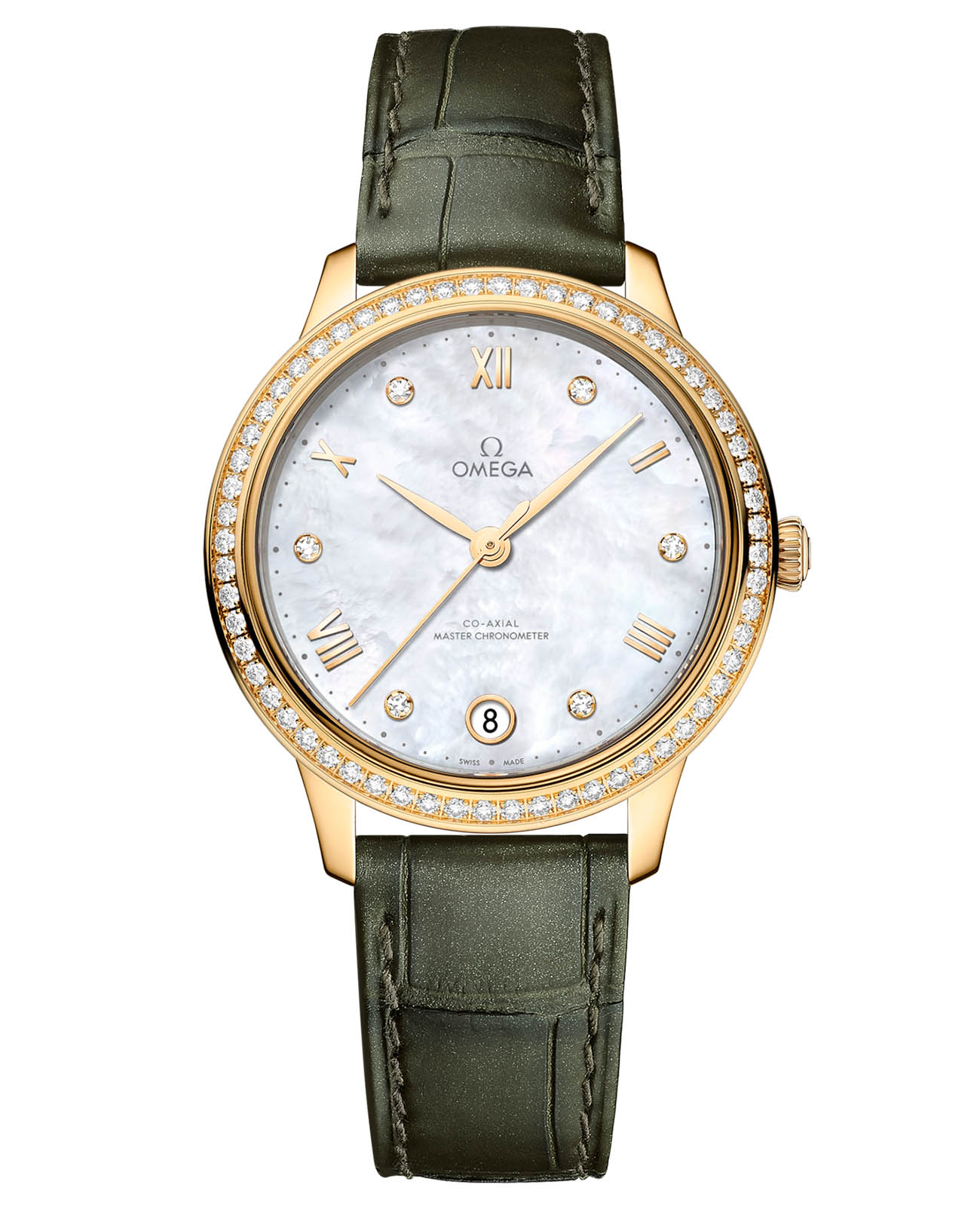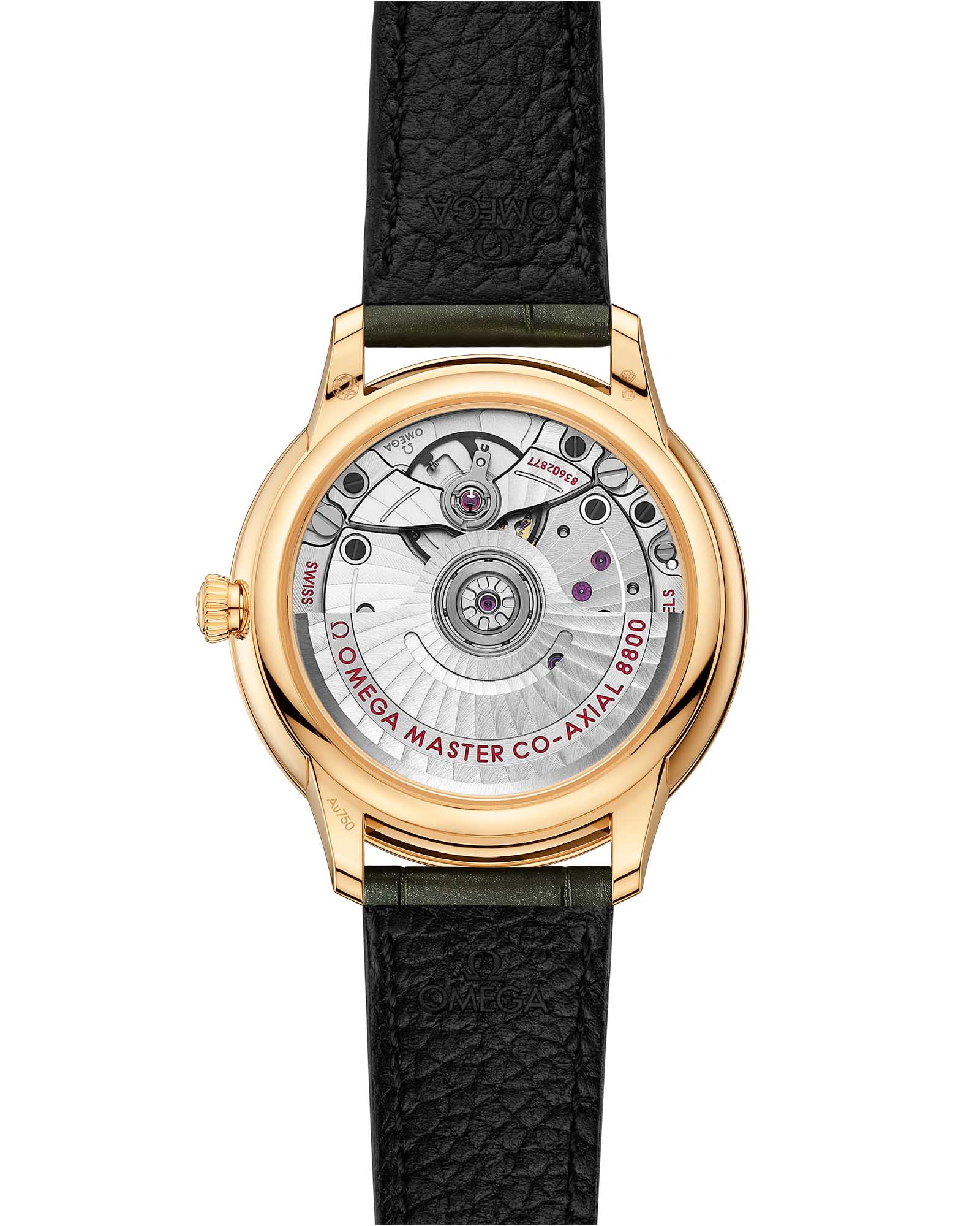 изящно сочетаются с чередующимися римскими цифрами и бриллиантовыми метками. Лаконичный дизайн подчеркнут функциональной элегантностью: окошком даты в положении «6 часов» и утонченной минутной шкалой в виде точек по периметру. Обладая престижным сертификатом Master Chronometer, модель представлена с переливающимся кожаным ремешком оливково-зеленого оттенка, а ее механическое сердце - калибр OMEGA Master Co-Axial 8800 - демонстрируется через прочное сапфировое стеклоСапфировое стеклоПрочный и надёжный материал из кристалла сапфира синтетического происхождения, характеризующийся особой твёрдостью и устойчивостью к царапинам и повреждениям. задней крышки, открывая взору истинное часовое мастерство.