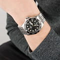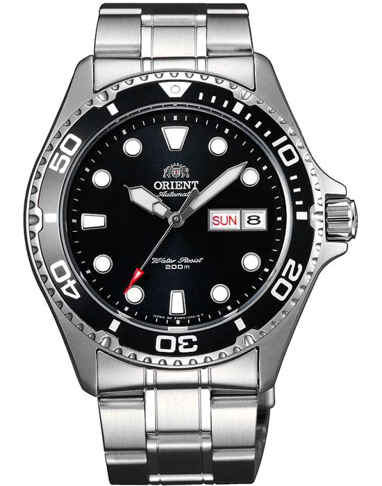 Часы Orient Ray II AA02004B — стильный и надежный выбор для современных мужчин. Корпус из высококачественной нержавеющей стали защищен Минеральным стекломМинеральное стеклоМинеральное стекло представляет собой искусственно выращенный минерал кварца. Такое стекло отличается особой устойчивостью к повреждениям и царапинам. Уступает по некоторым качествам сапфировому стеклу., устойчивым к царапинам и повреждениям. Черный циферблат с крупными метками и стрелками, покрытыми Люминесцентным покрытиемЛюминесцентное покрытиеПозволяет считывать показания времени в темноте. Производители наносят на стрелки, часовые индексы, безель или поверхность циферблата светонакопительный состав, дающий холодное свечение., обеспечивает идеальную читаемость в любых условиях, включая полное отсутствие света. Часы оснащены автоматическим механизмом Orient Calibre F6922, который поддерживает ручной завод и функцию остановки секундной стрелки для высокой точности настройки времени. Однонаправленный БезельБезельВнешний ободок, закрепляющий стекло. В спортивных часах так называется поворотное кольцо с делениями на циферблате, выполняет роль таймера – замеряет отрезки времени на шкале. Неподвижный безель – элемент декора. Однонаправленно вращающийся безель на дайверских часах позволяет фиксировать моменты погружения и выныривания на поверхность. позволяет отслеживать время погружений, подчеркивая их спортивный характер. Металлический браслет дополняется классической застежкой с фиксатором, обеспечивающей надежность и удобство при ношении. Водонепроницаемость до 200 метров делает эту модель идеальной как для активного отдыха, так и для профессионального использования под водой. Orient Ray II FAA02004B9 — это часы, которые сочетают функциональность и элегантность, подчеркивая вкус и стиль своего владельца.