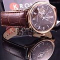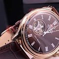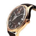 Orient Envoy Classic Open Heart AG00001T — это элегантные часы с утонченным классическим дизайном и надежным механизмом. Корпус диаметром 43 мм выполнен из нержавеющей стали с PVD-покрытиемPVDУльтратонкое покрытие наносится в технике вакуумного напыления, сочетает в себе нитрид титана особой прочности со слоем золота или оксида хрома. Несёт в себе декоративную или защитную функцию. розового цвета, что придаёт модели изысканный и стильный вид. Коричневый циферблат украшен римскими цифрами и тонкими стрелками, обеспечивающими отличную читаемость. Окошко "Open Heart" на отметке 9 часов позволяет наблюдать за работой механизма. Защитное минеральное стеклоМинеральное стеклоМинеральное стекло представляет собой искусственно выращенный минерал кварца. Такое стекло отличается особой устойчивостью к повреждениям и царапинам. Уступает по некоторым качествам сапфировому стеклу. с выпуклой формой добавляет часам винтажную эстетику. Внутри установлен автоматический механизм Orient калибра F6T22 с функцией ручного подзавода и стоп-секунды, обеспечивающий точность и запас хода до 40 часов. Модель укомплектована коричневым кожаным ремешком с тиснением под крокодила, а классическая застёжка обеспечивает комфортное и надежное ношение. Водонепроницаемость 50 метров защищает часы от брызг и кратковременного контакта с водой, делая их отличным выбором для повседневного использования.
