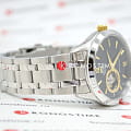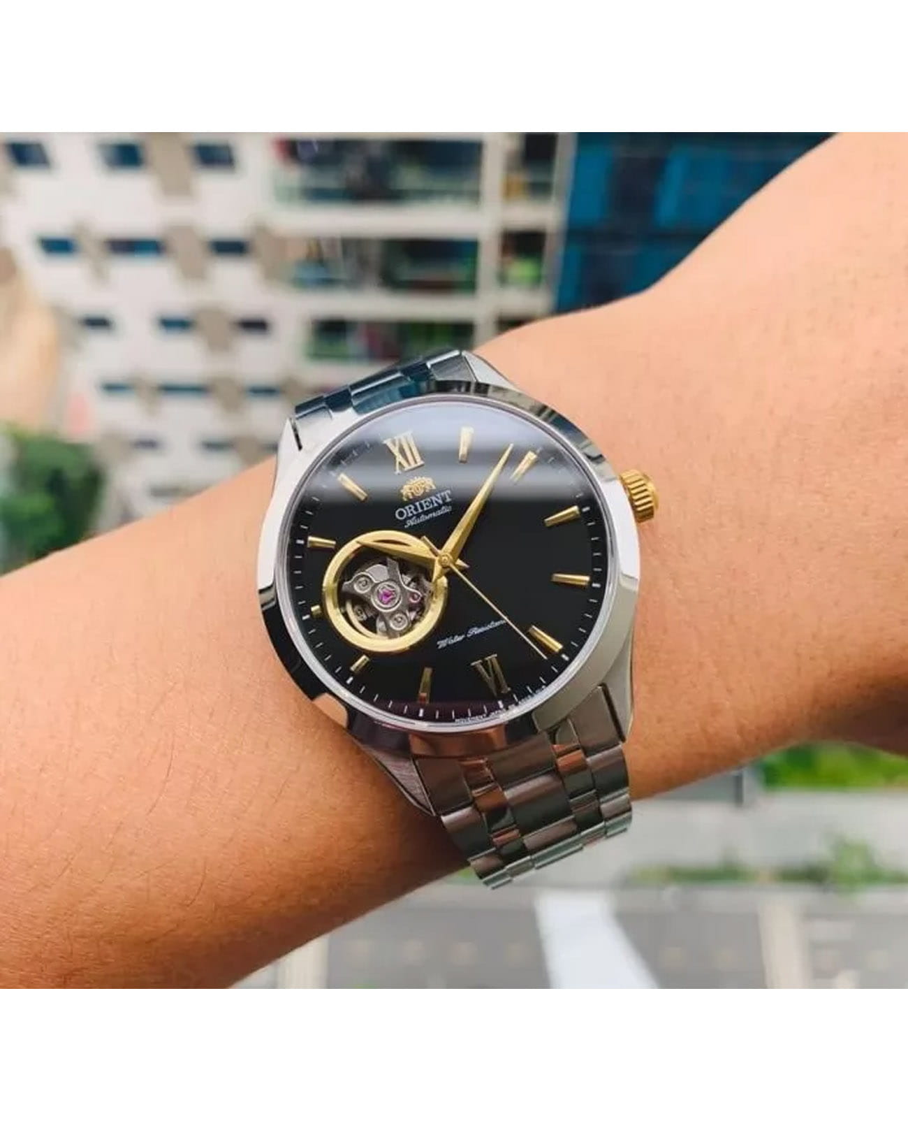 Мужские механические часы с автоподзаводом Orient Automatic AG03002B. Минеральное стеклоМинеральное стеклоМинеральное стекло представляет собой искусственно выращенный минерал кварца. Такое стекло отличается особой устойчивостью к повреждениям и царапинам. Уступает по некоторым качествам сапфировому стеклу. устойчивое к появлению царапин, обладающее высокой прозрачностью. Корпус из нержавеющей стали. Скелетон в положении 9 часов. Прозрачная задняя крышка. Класс водозащиты: 50 метров, позволит защитить корпус от случайных брызг или капель дождя. Стальной браслет на раскладной застёжкеРаскладная застёжкаТакой тип застёжки используется только на браслетах из металла. Она никогда не раскрывается полностью, происходит разделение на 2 и более частей. Раскладывающая застёжка снизит вероятность потери часов к минимуму..