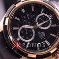 Корпусе из нержавеющей стали, с черным циферблатом и классическим кожаным ремешком Часовые метки в виде крупных белых арабских цифр, дополнительный циферблат хронографа на 30 минут и удобное окошко даты