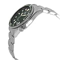 Мужские механические часы с автоподзаводом Orient Automatic RA-AC0K02E. Сапфировое стеклоСапфировое стеклоПрочный и надёжный материал из кристалла сапфира синтетического происхождения, характеризующийся особой твёрдостью и устойчивостью к царапинам и повреждениям. устойчивое к появлению царапин, обладающее высокой прозрачностью. Корпус из нержавеющей стали. Вращающийся безельБезельВнешний ободок, закрепляющий стекло. В спортивных часах так называется поворотное кольцо с делениями на циферблате, выполняет роль таймера – замеряет отрезки времени на шкале. Неподвижный безель – элемент декора. Однонаправленно вращающийся безель на дайверских часах позволяет фиксировать моменты погружения и выныривания на поверхность. из нержавеющей стали с PVDPVDУльтратонкое покрытие наносится в технике вакуумного напыления, сочетает в себе нитрид титана особой прочности со слоем золота или оксида хрома. Несёт в себе декоративную или защитную функцию. покрытием. Окошко даты в положении 4 часов. Стрелки и метки с люминесцентным покрытиемЛюминесцентное покрытиеПозволяет считывать показания времени в темноте. Производители наносят на стрелки, часовые индексы, безель или поверхность циферблата светонакопительный состав, дающий холодное свечение.. Класс водозащиты: 200 метров, позволит плавать, нырять и заниматься другими водными видами спорта. Стальной браслет на раскладной застёжкеРаскладная застёжкаТакой тип застёжки используется только на браслетах из металла. Она никогда не раскрывается полностью, происходит разделение на 2 и более частей. Раскладывающая застёжка снизит вероятность потери часов к минимуму..