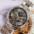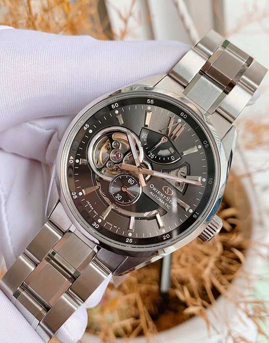 Мужские японские механические часы Orient Star RE-AV0004N представляют собой воплощение истинного мастерства и безупречного стиля. Они оснащены сапфировым стекломСапфировое стеклоПрочный и надёжный материал из кристалла сапфира синтетического происхождения, характеризующийся особой твёрдостью и устойчивостью к царапинам и повреждениям., которое отличается высокой устойчивостью к царапинам и гарантирует чёткую видимость циферблата в любых условиях. Корпус часов выполнен из прочной нержавеющей стали, что придаёт им надёжность и долговечность. Заводная головка имеет аккуратную рифлёную поверхность, облегчающую регулировку времени и даты. Задняя крышка корпуса выполнена прозрачной, позволяя насладиться красотой работающего механизма. Циферблат, созданный по технологии Sunray («солнечные лучи»), излучает мягкое сияние, плавно переходящее от центра к краям. Метки представлены тонкими штрихами и двумя крупными римскими цифрами, расположенными на позициях «VI» и «XII», что придаёт часам классический и элегантный вид. Стрелки покрыты люминесцентным составомЛюминесцентное покрытиеПозволяет считывать показания времени в темноте. Производители наносят на стрелки, часовые индексы, безель или поверхность циферблата светонакопительный состав, дающий холодное свечение., который обеспечивает отличное считывание времени даже в тёмных условиях. Стальной браслет, соединённый с корпусом, оборудован раскладной застёжкойРаскладная застёжкаТакой тип застёжки используется только на браслетах из металла. Она никогда не раскрывается полностью, происходит разделение на 2 и более частей. Раскладывающая застёжка снизит вероятность потери часов к минимуму., гарантируя комфортное ношение и надёжную фиксацию на запястье. Водонепроницаемость часов достигает уровня 100 метров, что позволяет использовать их во время плавания, занятий дайвингом и других активных водных мероприятий без риска повреждения. Эти часы сочетают в себе традиционное японское качество, современный дизайн и высокую функциональность, делая их отличным выбором для мужчин, ценящих точность, стиль и надёжность.