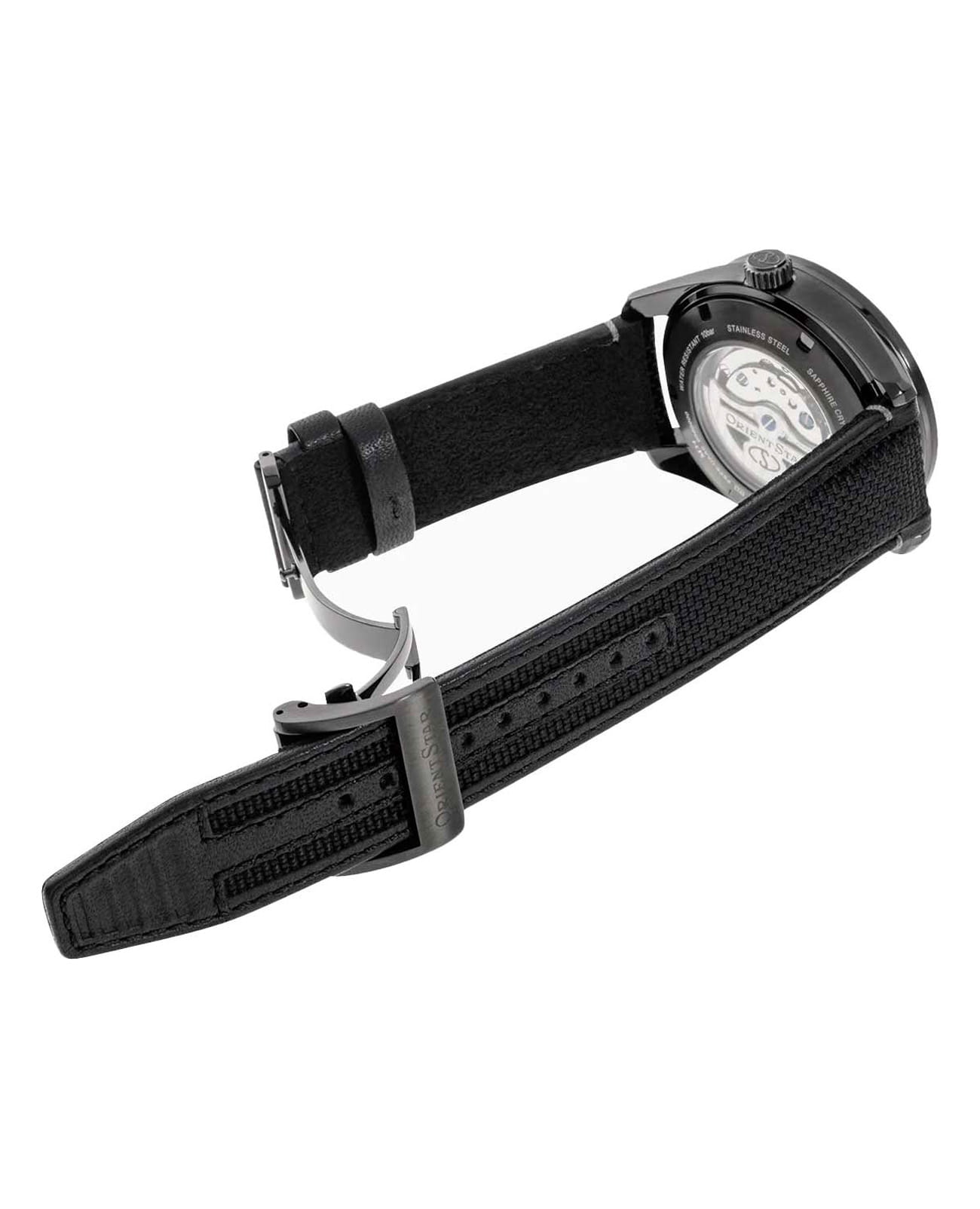 Класс водонепроницаемости 100 метров позволяет использовать часы в условиях повышенной влажности, например, под дождем или при мытье рук, но не предназначен для плавания или дайвинга. Браслет из нейлона Cordura Ballistic с раскладной застёжкойРаскладная застёжкаТакой тип застёжки используется только на браслетах из металла. Она никогда не раскрывается полностью, происходит разделение на 2 и более частей. Раскладывающая застёжка снизит вероятность потери часов к минимуму. обеспечивает комфорт и надежное крепление на запястье.