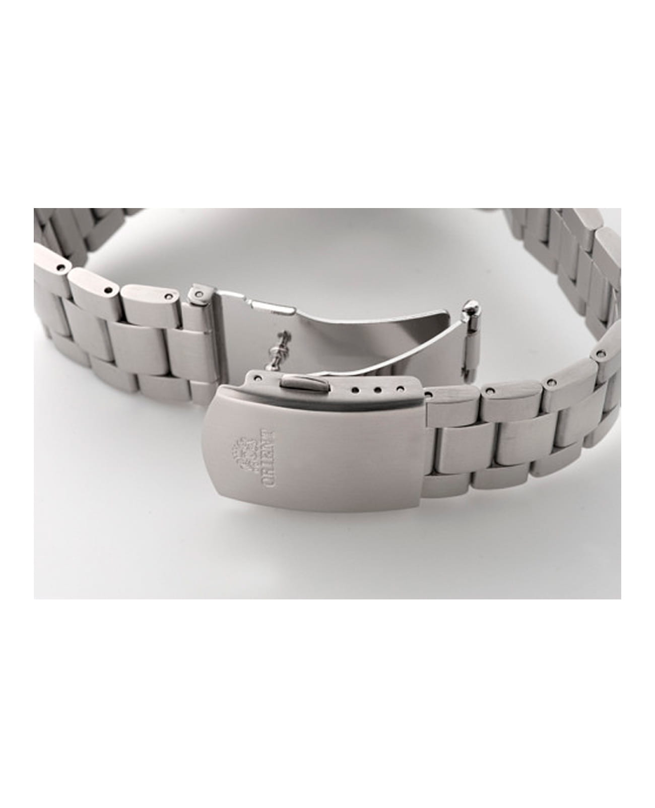 Ремешок выполнен из нержавеющей стали и оснащен раскладной застежкойРаскладная застёжкаТакой тип застёжки используется только на браслетах из металла. Она никогда не раскрывается полностью, происходит разделение на 2 и более частей. Раскладывающая застёжка снизит вероятность потери часов к минимуму., которая обеспечивает удобство и надежность при ношении.