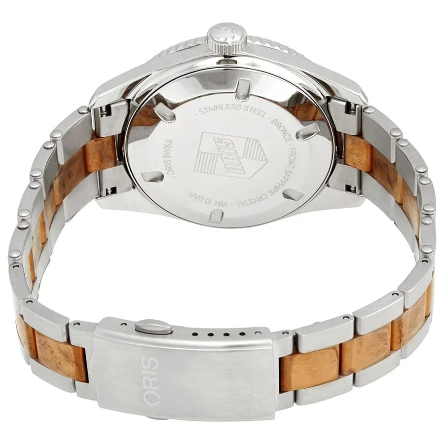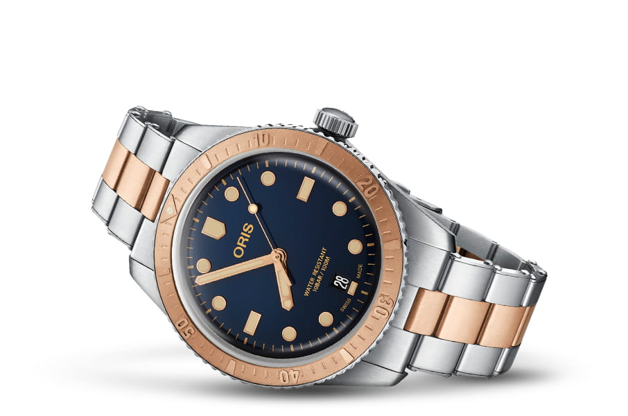 Многокомпонентный корпус из бронзы и стали, вращающийся бронзовый безельБезельВнешний ободок, закрепляющий стекло. В спортивных часах так называется поворотное кольцо с делениями на циферблате, выполняет роль таймера – замеряет отрезки времени на шкале. Неподвижный безель – элемент декора. Однонаправленно вращающийся безель на дайверских часах позволяет фиксировать моменты погружения и выныривания на поверхность. с минутной шкалой . Сапфировое стеклоСапфировое стеклоПрочный и надёжный материал из кристалла сапфира синтетического происхождения, характеризующийся особой твёрдостью и устойчивостью к царапинам и повреждениям., выпуклое с обеих сторон, внутреннее антибликовое покрытие. Прозрачная задняя крышка из сапфирового стеклаСапфировое стеклоПрочный и надёжный материал из кристалла сапфира синтетического происхождения, характеризующийся особой твёрдостью и устойчивостью к царапинам и повреждениям.. Стрелки и метки с люминесцентным покрытиемЛюминесцентное покрытиеПозволяет считывать показания времени в темноте. Производители наносят на стрелки, часовые индексы, безель или поверхность циферблата светонакопительный состав, дающий холодное свечение.. Завинчивающаяся заводная головка.