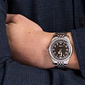 Мужские наручные часы Oris Big Crown Pointer Date 01 754 7741 4064-07 8 20 22 из коллекции Big Crown объединяют в себе классический дизайн и надежность швейцарского качества. Модель обладает круглым корпусом диаметром 40 мм, изготовленным из нержавеющей стали, что обеспечивает высокую устойчивость к внешним воздействиям. Браслет выполнен из нержавеющей стали с раскладной застежкойРаскладной замокДанный вариант застежки используется только на часах с металлическим браслетом. Отличительная особенность такого крепления в том, что длина браслета становится универсальной и вы можете самостоятельно отрегулировать нужный вам размер – застежка просто двигается по браслету часов., гарантирующей комфортное ношение и безопасность. Серый циферблат оснащен указателем даты стрелочного типа и крупными индексами с люминесцентным покрытиемЛюминесцентное покрытиеПозволяет считывать показания времени в темноте. Производители наносят на стрелки, часовые индексы, безель или поверхность циферблата светонакопительный состав, дающий холодное свечение., которые обеспечивают отличную видимость в любых условиях. Для защиты применяется сапфировое стеклоСапфировое стеклоПрочный и надёжный материал из кристалла сапфира синтетического происхождения, характеризующийся особой твёрдостью и устойчивостью к царапинам и повреждениям. с антибликовым покрытиемАнтибликовое покрытиеСлой оксида металла в 0,13-0,3 микрон, благодаря которому стекло часов не бликует и не отражает свет. Антибликовое покрытие уменьшает отражение света в 10 раз, обеспечивая отличную читаемость показателей циферблата., обеспечивающее исключительную защиту от царапин и оптимальный обзор времени. Часы работают на автоматическом механизме Oris 754, основе SW 200-1, который имеет запас хода около 38 часов. Водонепроницаемость часов достигает 50 атмосфер (50 метров), что позволит защитить корпус от случайных брызг или капель дождя. Эти часы идеально подходят для тех, кто ценит точность, надежность и стильный дизайн, будь то повседневная носка или специальные мероприятия.