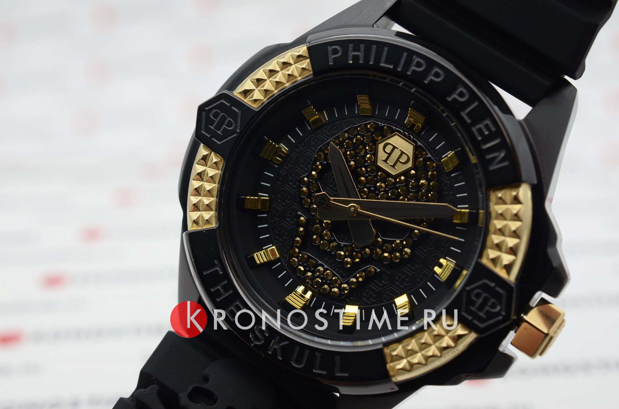 Яркие мужские часы с минеральным стекломМинеральное стеклоМинеральное стекло представляет собой искусственно выращенный минерал кварца. Такое стекло отличается особой устойчивостью к повреждениям и царапинам. Уступает по некоторым качествам сапфировому стеклу. Philipp Plein The Skull PWAAA1321, кварцевый механизм с высокой точностью. Класс водозащиты: 50 метров, позволит защитить корпус от случайных брызг или капель дождя. Корпус часов изготовлен из стали с IP-покрытиемIP-покрытиеМетод ионного напыления. Демонстрирует повышенную устойчивость к истиранию, окислению и химическим веществам. Под воздействием высокого давления и температуры около 1500°C молекулы металла надёжно соединяются с частицами корпуса часов..