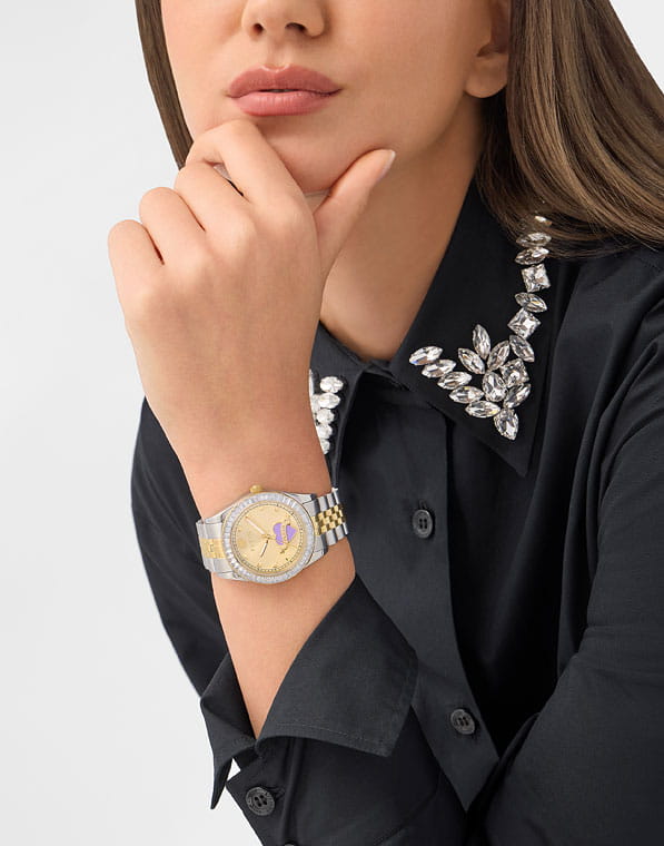 Женские кварцевые часы Philipp Plein Plein Valentine PW2BA0925 – дерзкое заявление любви к роскоши и бунтарскому стилю. Диаметр круглого корпуса из прочной нержавеющей стали равен 38 мм. Минеральное стеклоМинеральное стеклоМинеральное стекло представляет собой искусственно выращенный минерал кварца. Такое стекло отличается особой устойчивостью к повреждениям и царапинам. Уступает по некоторым качествам сапфировому стеклу. защищает циферблат от царапин. БезельБезельВнешний ободок, закрепляющий стекло. В спортивных часах так называется поворотное кольцо с делениями на циферблате, выполняет роль таймера – замеряет отрезки времени на шкале. Неподвижный безель – элемент декора. Однонаправленно вращающийся безель на дайверских часах позволяет фиксировать моменты погружения и выныривания на поверхность. с PVD-покрытиемPVDУльтратонкое покрытие наносится в технике вакуумного напыления, сочетает в себе нитрид титана особой прочности со слоем золота или оксида хрома. Несёт в себе декоративную или защитную функцию. и инкрустирован кристаллами. Стальной браслет на застёжке «бабочка» с кнопкамиЗастёжка "бабочка"Такой вид застёжки дополняется предохранителями, помогающими избежать случайного раскрытия браслета. Обладают изящным исполнением. обеспечивает надёжную фиксацию и комфортное ношение. Люминесцентное покрытиеЛюминесцентное покрытиеПозволяет считывать показания времени в темноте. Производители наносят на стрелки, часовые индексы, безель или поверхность циферблата светонакопительный состав, дающий холодное свечение. стрелок и меток позволит следить за временем даже в полной темноте. Яркий дизайн с узнаваемым логотипом Plein и смелыми акцентами не оставит вас незамеченным. Идеальный аксессуар для тех, кто ценит индивидуальность и не боится выделяться из толпы.