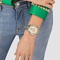 Яркие женские часы с минеральным стекломМинеральное стеклоМинеральное стекло представляет собой искусственно выращенный минерал кварца. Такое стекло отличается особой устойчивостью к повреждениям и царапинам. Уступает по некоторым качествам сапфировому стеклу. Philipp Plein The Skull PWNAA1523, кварцевый механизм с высокой точностью. Класс водозащиты: 50 метров, позволит защитить корпус от случайных брызг или капель дождя. Корпус часов изготовлен из стали с IP-покрытиемIP-покрытиеМетод ионного напыления. Демонстрирует повышенную устойчивость к истиранию, окислению и химическим веществам. Под воздействием высокого давления и температуры около 1500°C молекулы металла надёжно соединяются с частицами корпуса часов.. Циферблат дополнен трехмерным граненым черепом. Шестигранная заводная головка с защитой. Застёжка бабочка с кнопкамиЗастёжка "бабочка"Такой вид застёжки дополняется предохранителями, помогающими избежать случайного раскрытия браслета. Обладают изящным исполнением. .
