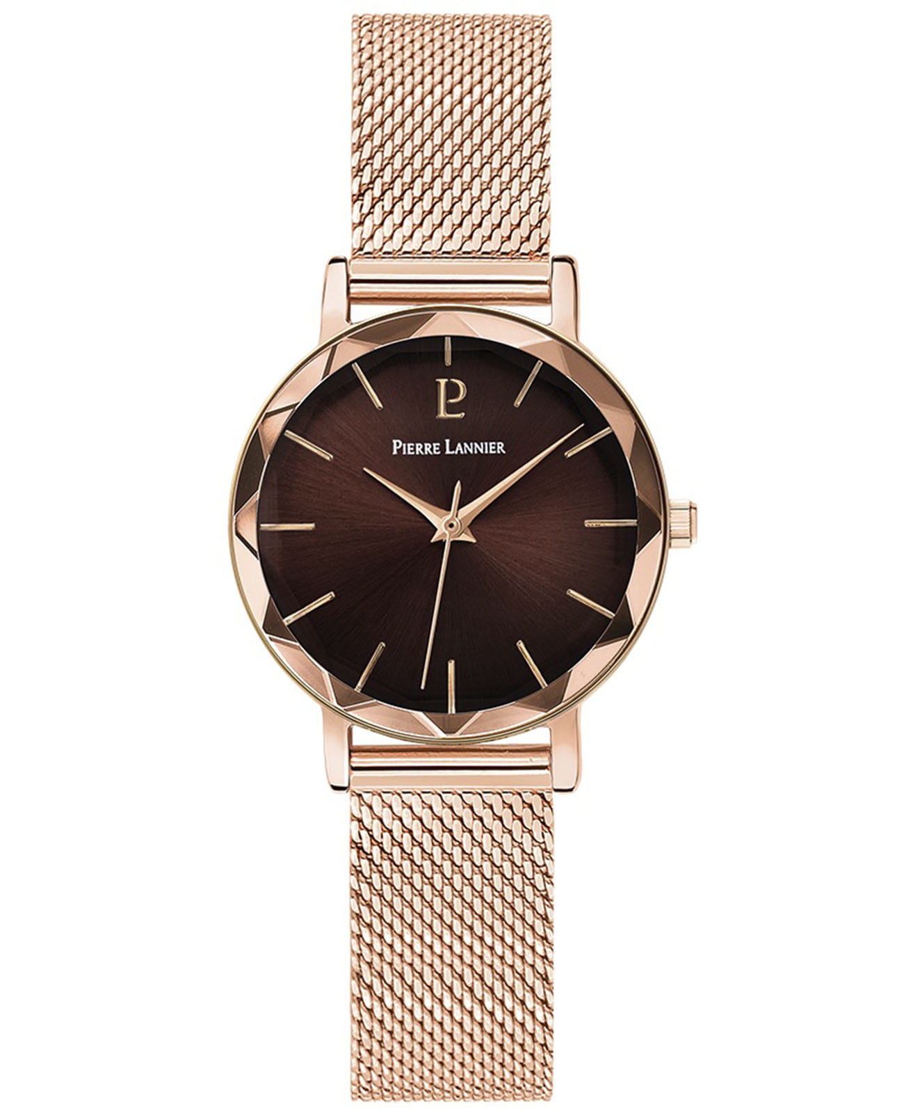 Женские кварцевые часы Pierre Lannier 010P988 — это стильный аксессуар, созданный в Франции и сочетающий элегантность с функциональностью. Модель оснащена калибром с автоподзаводом и имеет центральные часовые стрелки, что обеспечивает чёткое отображение времени. Корпус круглой формы выполнен из нержавеющей стали с IP-покрытиемIP-покрытиеМетод ионного напыления. Демонстрирует повышенную устойчивость к истиранию, окислению и химическим веществам. Под воздействием высокого давления и температуры около 1500°C молекулы металла надёжно соединяются с частицами корпуса часов. цвета розового золота, что придаёт ему благородный внешний вид и устойчивость к царапинам. Диаметр корпуса составляет 30 мм. Циферблат коричневого цвета дополнен прочным минеральным стекломМинеральное стеклоМинеральное стекло представляет собой искусственно выращенный минерал кварца. Такое стекло отличается особой устойчивостью к повреждениям и царапинам. Уступает по некоторым качествам сапфировому стеклу., устойчивым к повседневным нагрузкам. Браслет шириной 14 мм изготовлен из стали с покрытием и выполнен в технике миланского плетения, а его раскладная застёжка обеспечивает комфорт и надёжную фиксацию на запястье. Водонепроницаемость позволяет использовать модель при мытье рук или под лёгким дождём. Эти часы станут универсальным аксессуаром для повседневной носки и торжественных случаев — идеальный выбор для женщин, которые ценят сочетание стиля, качества и французского мастерства.