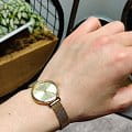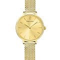 Женские кварцевые часы Pierre Lannier Nova 014J548. Центральные часовая и минутная стрелки. Золотистый циферблат. Круглый корпус выполнен из полированной нержавеющей стали с фактурой по безелюБезельВнешний ободок, закрепляющий стекло. В спортивных часах так называется поворотное кольцо с делениями на циферблате, выполняет роль таймера – замеряет отрезки времени на шкале. Неподвижный безель – элемент декора. Однонаправленно вращающийся безель на дайверских часах позволяет фиксировать моменты погружения и выныривания на поверхность. с IP-покрытиемIP-покрытиеМетод ионного напыления. Демонстрирует повышенную устойчивость к истиранию, окислению и химическим веществам. Под воздействием высокого давления и температуры около 1500°C молекулы металла надёжно соединяются с частицами корпуса часов.. Стальной браслет выполнен в технике миланского плетения, раскладная застёжкаРаскладная застёжкаТакой тип застёжки используется только на браслетах из металла. Она никогда не раскрывается полностью, происходит разделение на 2 и более частей. Раскладывающая застёжка снизит вероятность потери часов к минимуму.. Прочное минеральное стеклоМинеральное стеклоМинеральное стекло представляет собой искусственно выращенный минерал кварца. Такое стекло отличается особой устойчивостью к повреждениям и царапинам. Уступает по некоторым качествам сапфировому стеклу., устойчивое к мелким механическим повреждениям. Водостойкость: 30 метров, позволит защитить корпус от случайных брызг или капель дождя.