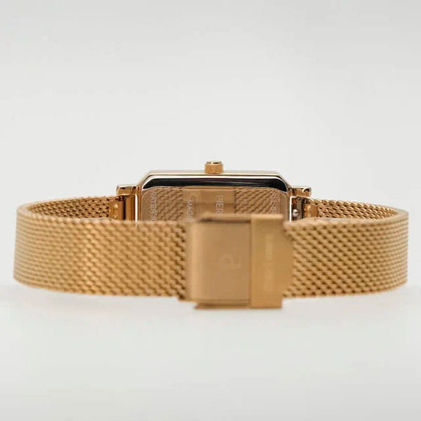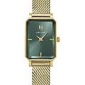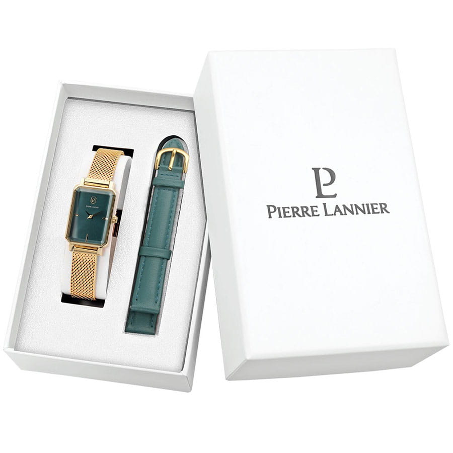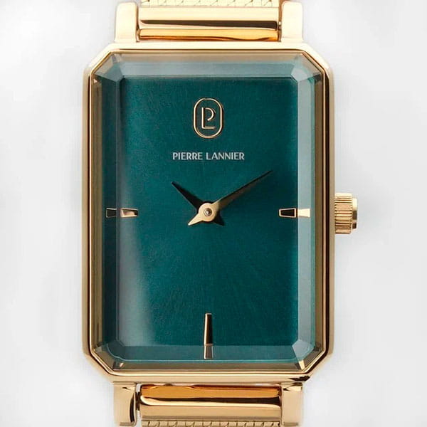 Женские кварцевые часы Pierre Lannier — это элегантный аксессуар с французским дизайном. Корпус прямоугольной формы размером 21 мм и толщиной 7,8 мм выполнен из нержавеющей стали с IP-покрытиемIP-покрытиеМетод ионного напыления. Демонстрирует повышенную устойчивость к истиранию, окислению и химическим веществам. Под воздействием высокого давления и температуры около 1500°C молекулы металла надёжно соединяются с частицами корпуса часов. цвета жёлтого золота. Циферблат зелёного цвета оформлен стрелками. Циферблат защищён минеральным стекломМинеральное стеклоМинеральное стекло представляет собой искусственно выращенный минерал кварца. Такое стекло отличается особой устойчивостью к повреждениям и царапинам. Уступает по некоторым качествам сапфировому стеклу., устойчивым к мелким механическим повреждениям. Часы оснащены стальным браслетом миланского плетения с IP-покрытиемIP-покрытиеМетод ионного напыления. Демонстрирует повышенную устойчивость к истиранию, окислению и химическим веществам. Под воздействием высокого давления и температуры около 1500°C молекулы металла надёжно соединяются с частицами корпуса часов. на раскладной застёжкеРаскладная застёжкаТакой тип застёжки используется только на браслетах из металла. Она никогда не раскрывается полностью, происходит разделение на 2 и более частей. Раскладывающая застёжка снизит вероятность потери часов к минимуму.. В комплект входит дополнительный кожаный ремешок. Водонепроницаемость 30 м позволяет использовать часы в повседневных условиях. Идеальный выбор для тех, кто ценит французский стиль и универсальный дизайн.