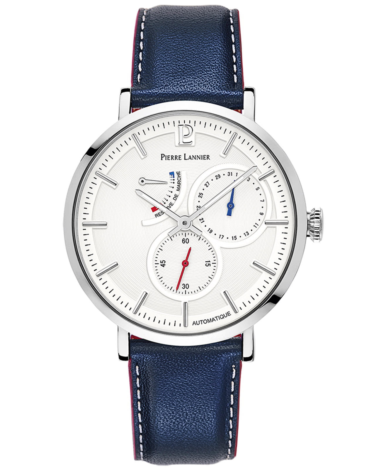 Мужские механические часы с автоподзаводом Pierre Lannier Evidence 327B106. Минеральное стеклоМинеральное стеклоМинеральное стекло представляет собой искусственно выращенный минерал кварца. Такое стекло отличается особой устойчивостью к повреждениям и царапинам. Уступает по некоторым качествам сапфировому стеклу. устойчивое к мелким механическим повреждениям. Центральные часовая и минутная стрелки, секундная стрелка вынесена на малый циферблат. Отображение даты в малом циферблате. Ретроградный индикатор запаса хода. Корпус выполнен из нержавеющей стали. Водостойкость: 50 метров, позволит защитить корпус от случайных брызг или капель дождя. Кожаный ремешок на стандартной застёжке. Стрелки с люминесцентным покрытиемЛюминесцентное покрытиеПозволяет считывать показания времени в темноте. Производители наносят на стрелки, часовые индексы, безель или поверхность циферблата светонакопительный состав, дающий холодное свечение..