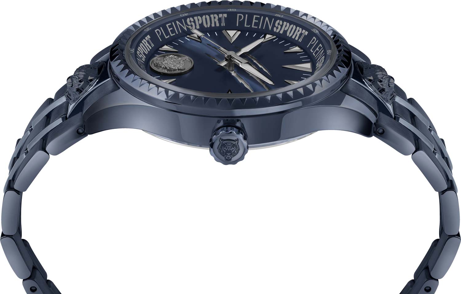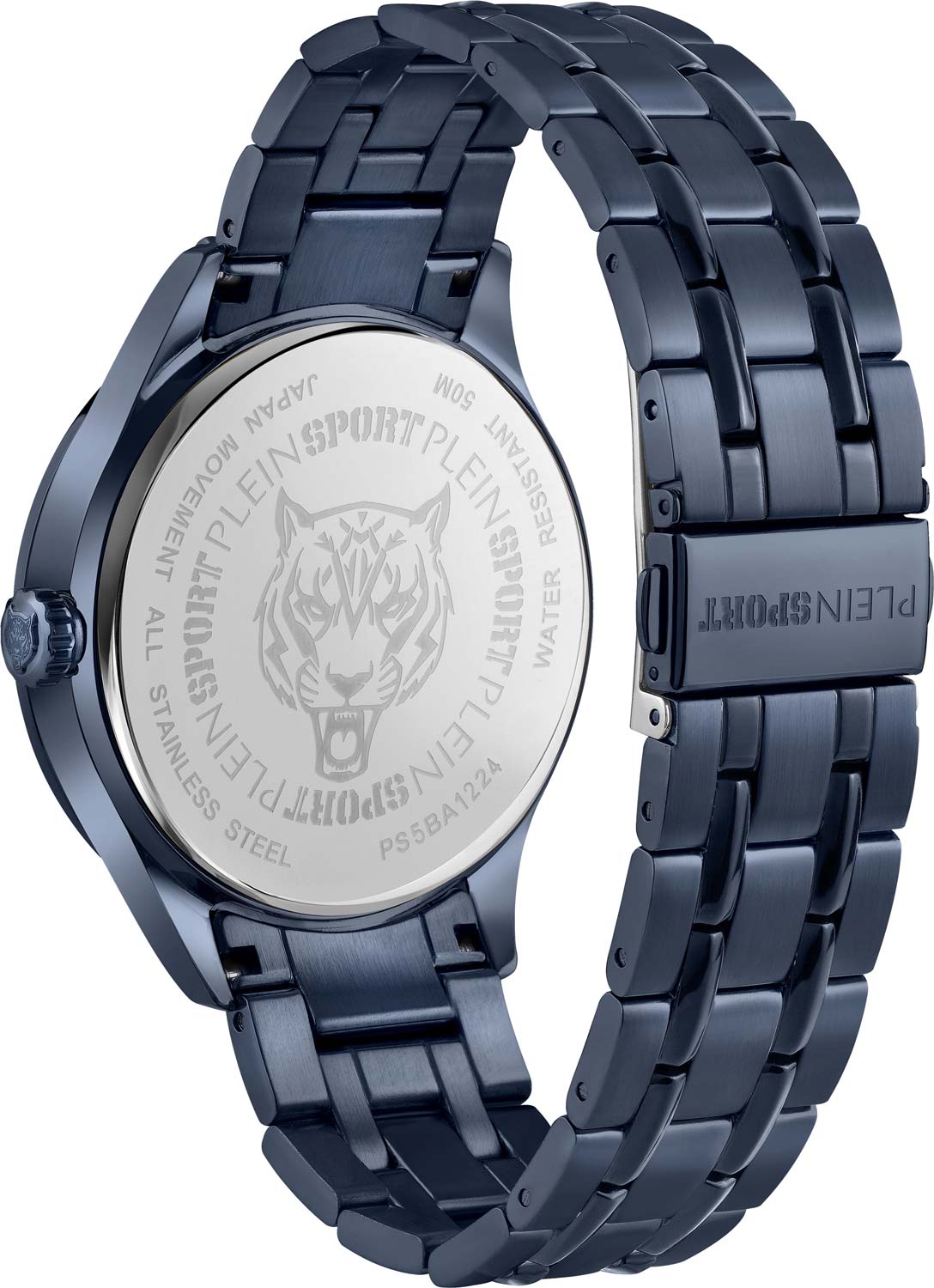 Дерзкий аксессуар со смелым, бунтарским дизайном будет с вами в любом приключении. Мужские кварцевые Plein Sport PS5BA1224 часы. Корпус часов изготовлен из стали с IP-покрытиемIP-покрытиеМетод ионного напыления. Демонстрирует повышенную устойчивость к истиранию, окислению и химическим веществам. Под воздействием высокого давления и температуры около 1500°C молекулы металла надёжно соединяются с частицами корпуса часов.. Циферблат дополнен паттерном ''след когтей''. Метки в виде штрихов, фирменное лого в виде тигра в положении 6 часов. Рифленая заводная головка с защитой. Класс водозащиты: 50 метров, позволит защитить корпус от случайных брызг или капель дождя. Стальной браслет с IP-покрытиемIP-покрытиеМетод ионного напыления. Демонстрирует повышенную устойчивость к истиранию, окислению и химическим веществам. Под воздействием высокого давления и температуры около 1500°C молекулы металла надёжно соединяются с частицами корпуса часов. на раскладной застёжкеРаскладная застёжкаТакой тип застёжки используется только на браслетах из металла. Она никогда не раскрывается полностью, происходит разделение на 2 и более частей. Раскладывающая застёжка снизит вероятность потери часов к минимуму..