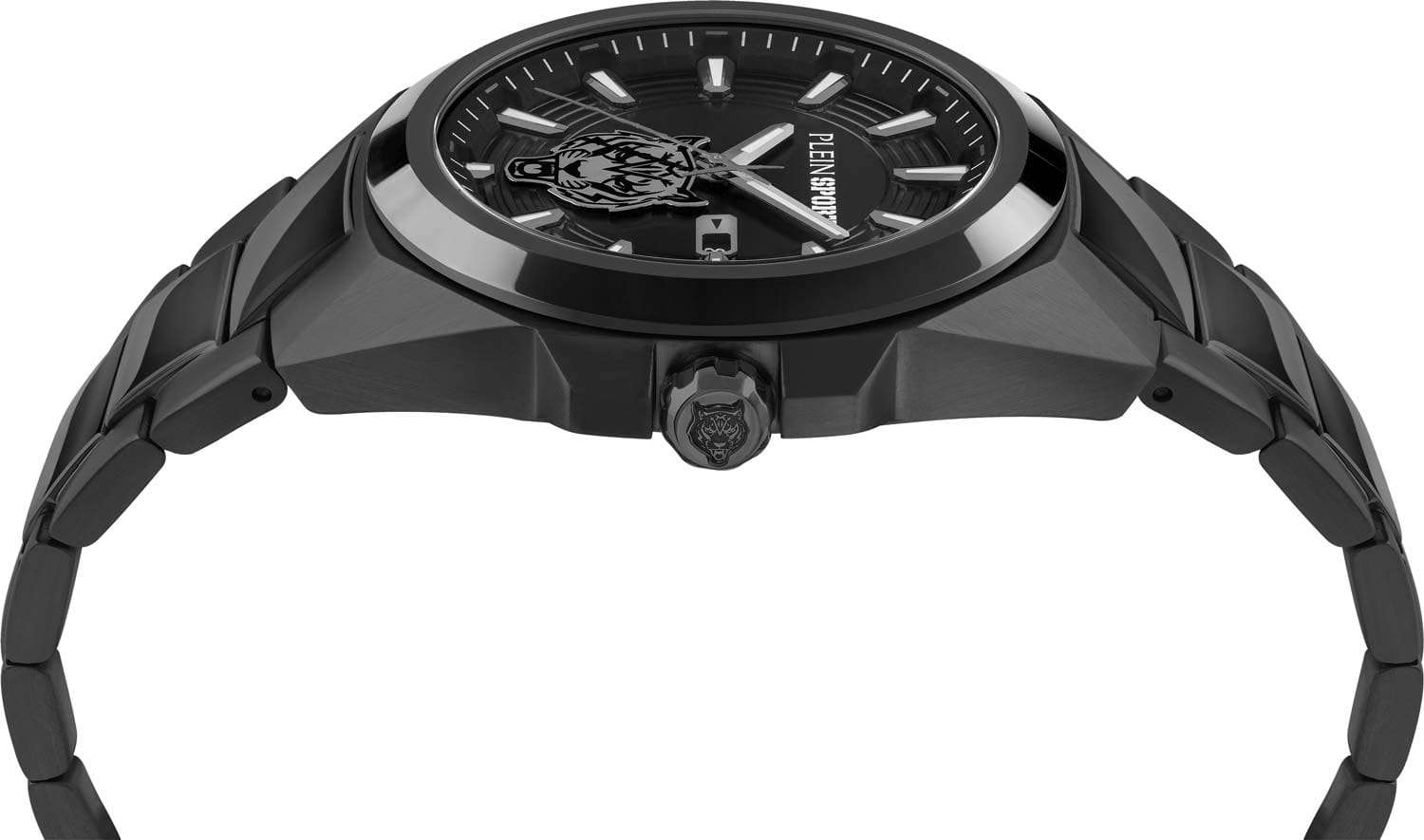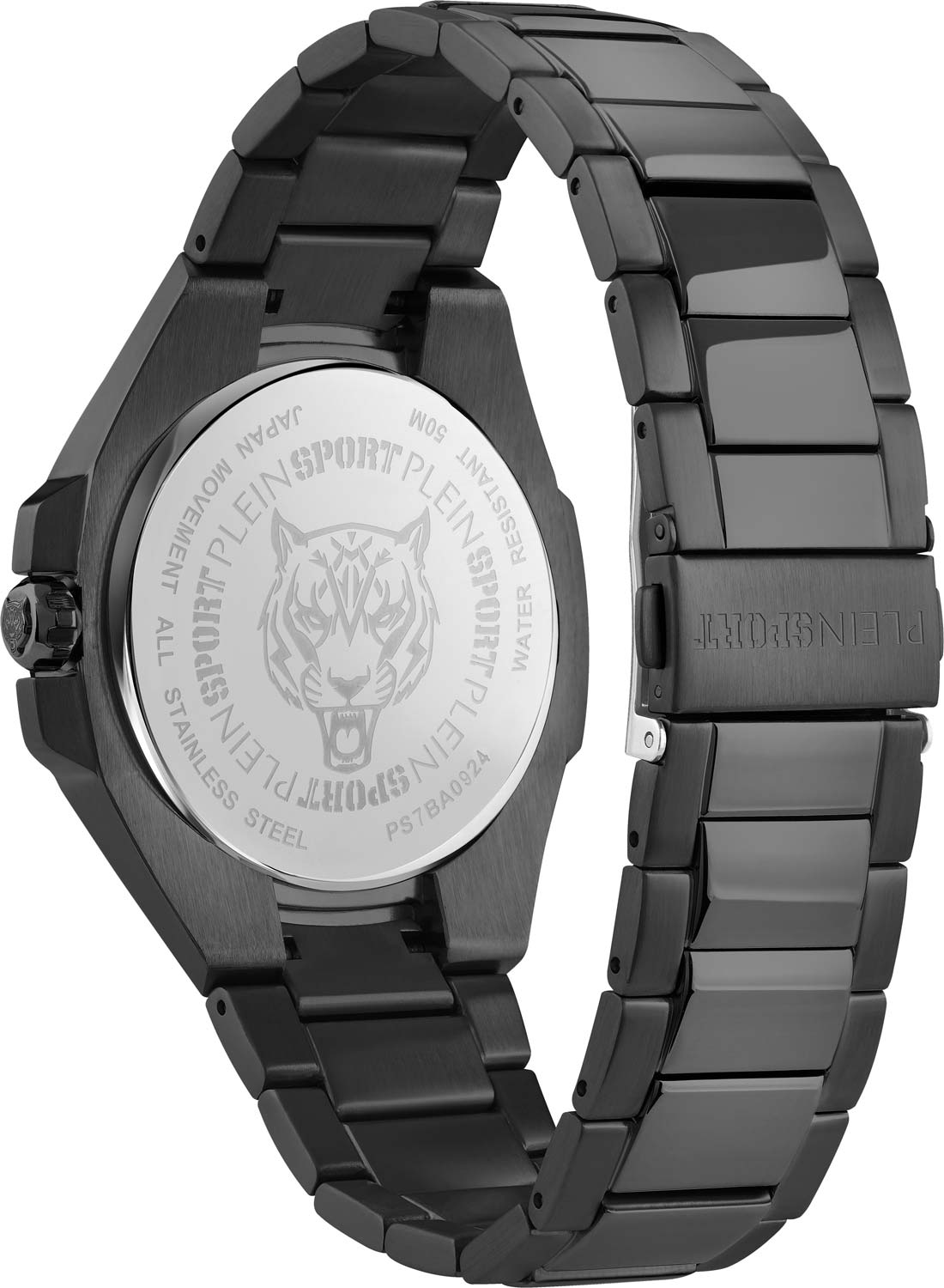 Аксессуар, в котором сталкиваются спорт и стиль, а каждая деталь источает силу и решительность. Мужские кварцевые Plein Sport PS7BA0924 часы. Корпус и браслет часов изотовлены из стали с IP-покрытиемIP-покрытиеМетод ионного напыления. Демонстрирует повышенную устойчивость к истиранию, окислению и химическим веществам. Под воздействием высокого давления и температуры около 1500°C молекулы металла надёжно соединяются с частицами корпуса часов.. Минеральное стеклоМинеральное стеклоМинеральное стекло представляет собой искусственно выращенный минерал кварца. Такое стекло отличается особой устойчивостью к повреждениям и царапинам. Уступает по некоторым качествам сапфировому стеклу.. Рифленая заводная головка с защитой. Класс водозащиты: 50 метров, позволит защитить корпус от случайных брызг или капель дождя. Стрелки и метки с люминесцентным покрытиемЛюминесцентное покрытиеПозволяет считывать показания времени в темноте. Производители наносят на стрелки, часовые индексы, безель или поверхность циферблата светонакопительный состав, дающий холодное свечение.. Окошко даты находится в положении 3 часа.