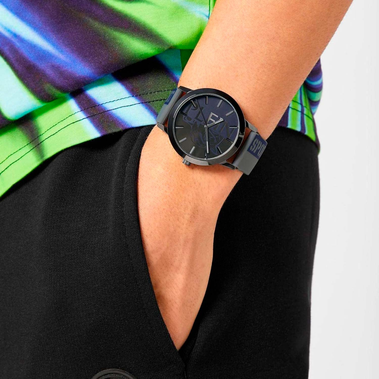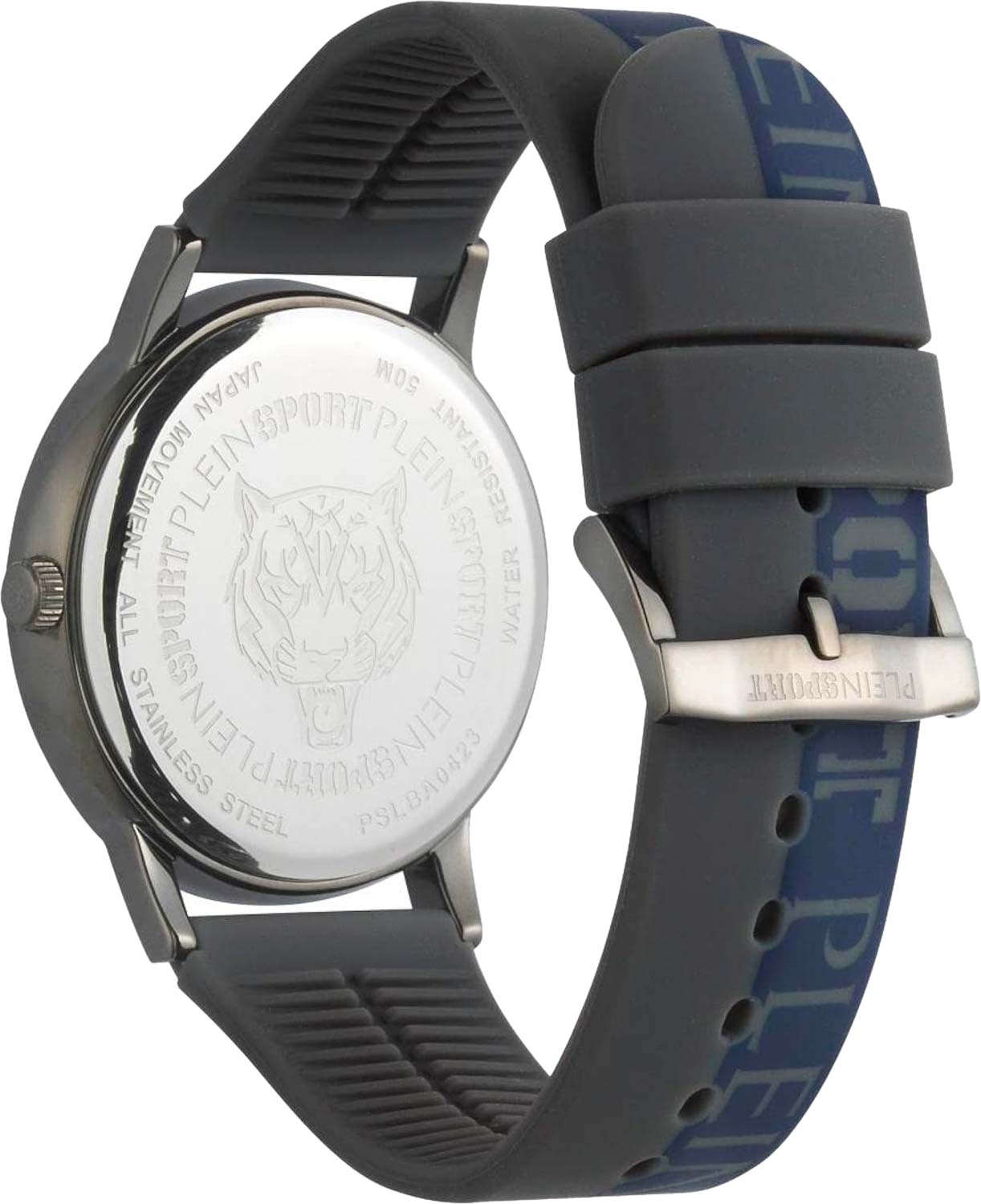 Немецкие мужские кварцевые часы Plein Sport Legend PSLBA0423 с минеральным стекломМинеральное стеклоМинеральное стекло представляет собой искусственно выращенный минерал кварца. Такое стекло отличается особой устойчивостью к повреждениям и царапинам. Уступает по некоторым качествам сапфировому стеклу., кварцевый механизм с высокой точностью. Класс водозащиты: 50 метров, позволит защитить корпус от случайных брызг или капель дождя. Корпус часов изготовлен из стали с IP-покрытиемIP-покрытиеМетод ионного напыления. Демонстрирует повышенную устойчивость к истиранию, окислению и химическим веществам. Под воздействием высокого давления и температуры около 1500°C молекулы металла надёжно соединяются с частицами корпуса часов.. Стрелки и метки с люминесцентным покрытиемЛюминесцентное покрытиеПозволяет считывать показания времени в темноте. Производители наносят на стрелки, часовые индексы, безель или поверхность циферблата светонакопительный состав, дающий холодное свечение.. Силиконовый ремешок на стандартной застёжке.