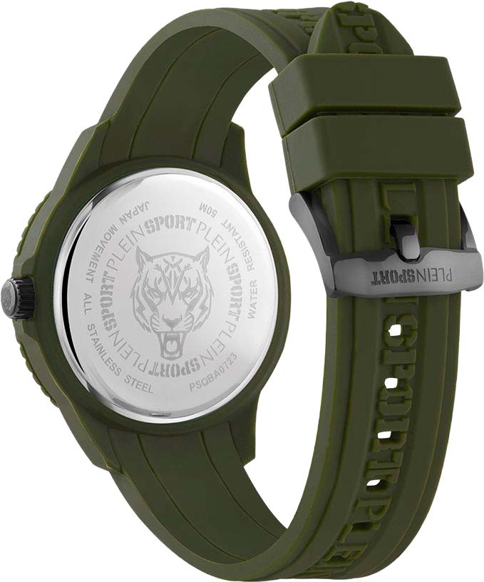 Немецкие мужские кварцевые часы Plein Sport Fearless PSQBA0723, кварцевый механизм с высокой точностью. Класс водозащиты: 50 метров, позволит защитить корпус от случайных брызг или капель дождя. Корпус часов изготовлен из пластика. Силиконовый ремешок на стандартной застёжке. Окошко даты находится в положении 6 часов.