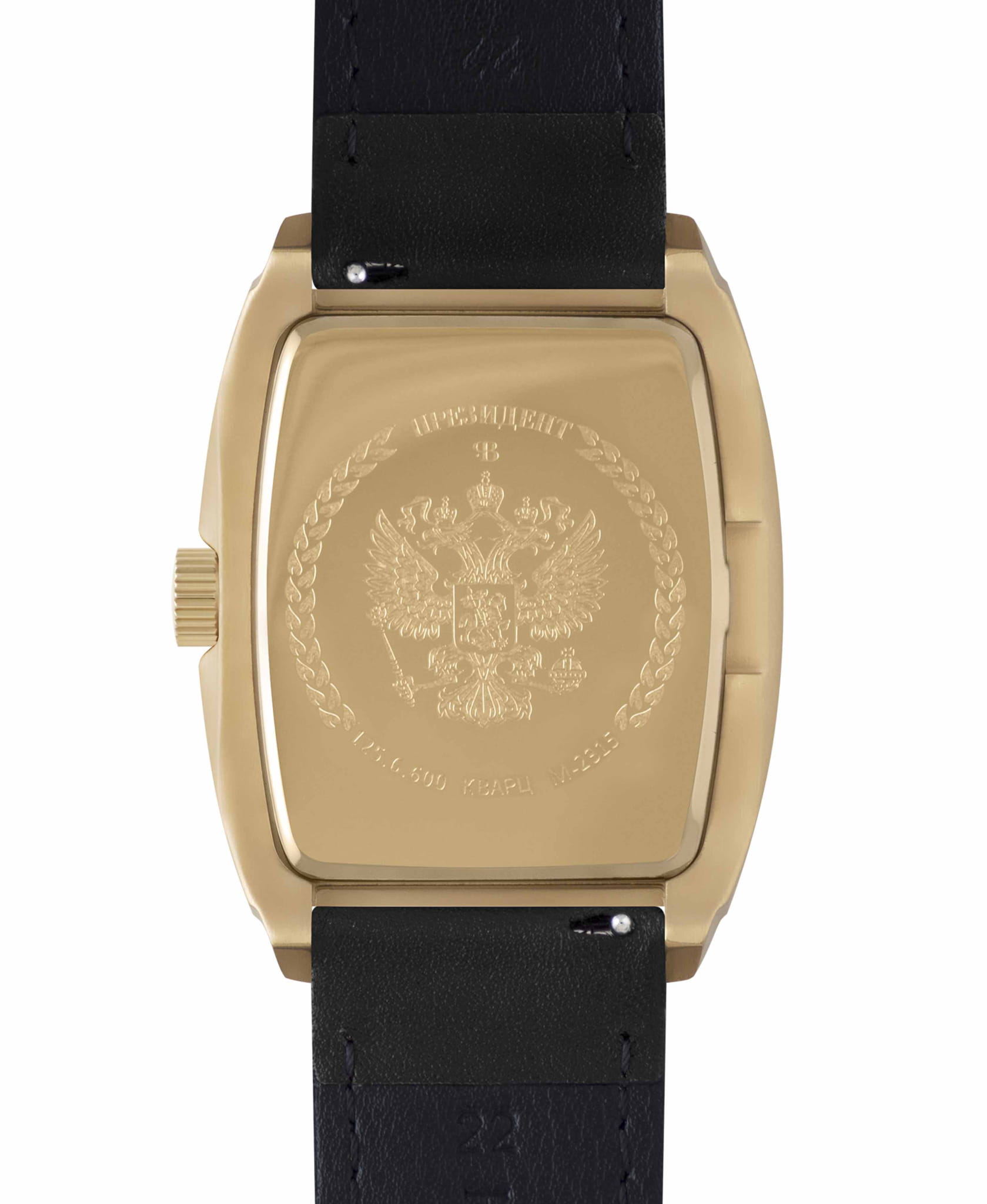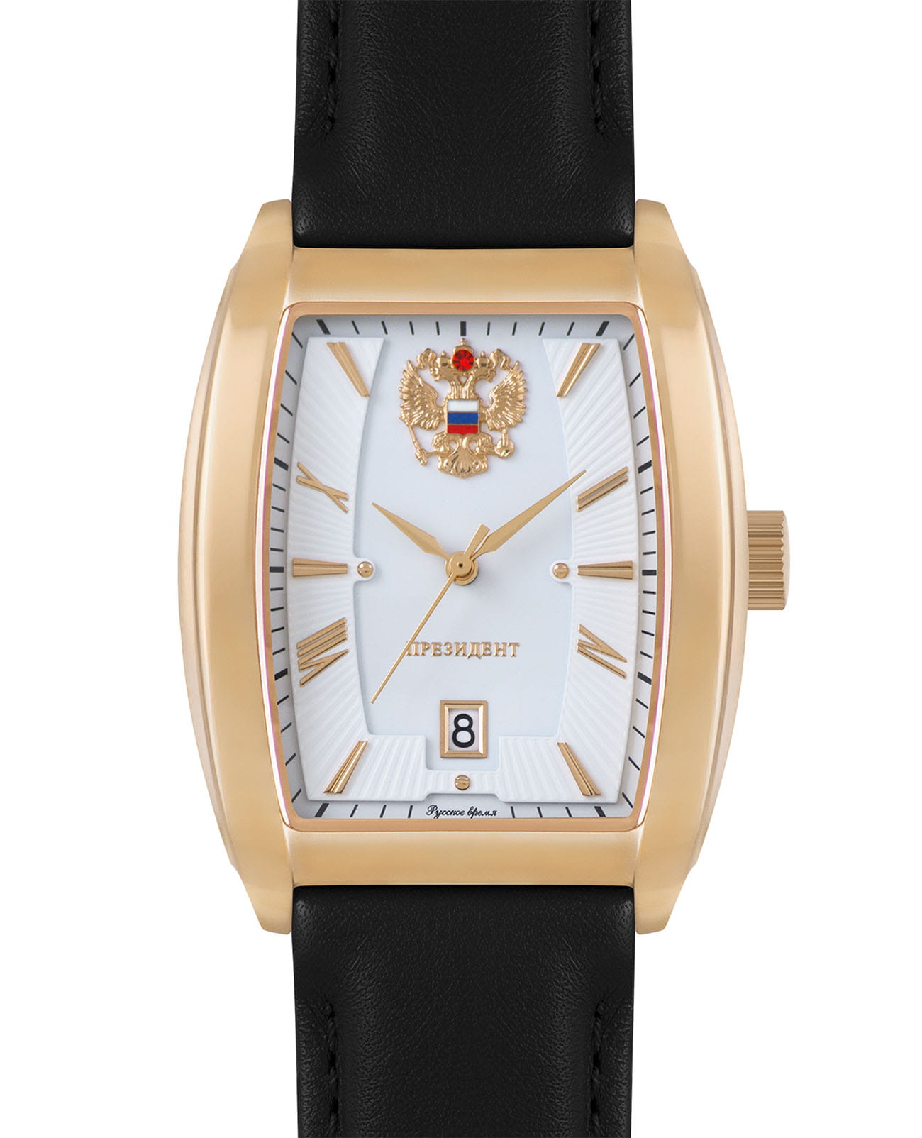 Мужские кварцевые часы из коллекции Президент — это сочетание строгого дизайна и статусного вида. Корпус прямоугольной формы выполнен в цвете желтое золото с PVD-покрытиемPVDУльтратонкое покрытие наносится в технике вакуумного напыления, сочетает в себе нитрид титана особой прочности со слоем золота или оксида хрома. Несёт в себе декоративную или защитную функцию. и защищён минеральным стекломМинеральное стеклоМинеральное стекло представляет собой искусственно выращенный минерал кварца. Такое стекло отличается особой устойчивостью к повреждениям и царапинам. Уступает по некоторым качествам сапфировому стеклу.. Циферблат дополнен окошком даты, расположенным на отметке 3 часа. Часы оснащены кожаным ремешком, обеспечивающим комфорт при ношении. Механизм — японский кварцевый Miyota, гарантирующий точное отсчёт времени. Водонепроницаемость 30 м позволяет использовать часы в повседневных условиях, защищая от случайных брызг и капель дождя. Комплектация включает подарочный футляр, паспорт с гарантийным талоном и фирменный пакет.