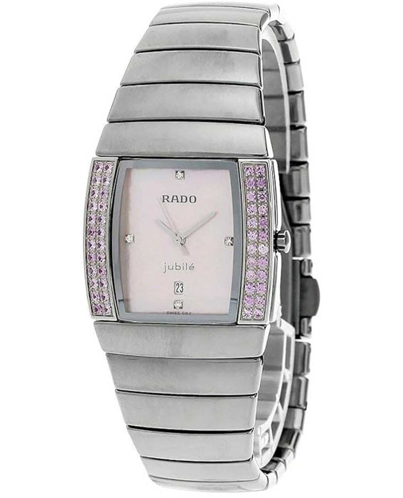 Часы Rado Sintra R13581922, произведение искусства и технологическое чудо, станут прекрасным дополнением к коллекции. Эти швейцарские часы оснащены кварцевым механизмом с указателем даты и тремя стрелками, заключенным в корпус из нержавеющей стали. Браслет изготовлен из высокотехнологичной керамикиВысокотехнологичная керамикаИнновационный запатентованный Rado материал с гладкой или матовой поверхностью. Керамика за счёт кристаллической структуры обладает повышенной устойчивостью от возникновения царапин. Материал способен принимать температуру тела человека, обеспечивая невероятный комфорт при ношении. с раскладной застёжкойРаскладная застёжкаТакой тип застёжки используется только на браслетах из металла. Она никогда не раскрывается полностью, происходит разделение на 2 и более частей. Раскладывающая застёжка снизит вероятность потери часов к минимуму.. Корпус украшен 48 бриллиантами (0,50 карата). Сапфировое стеклоСапфировое стеклоПрочный и надёжный материал из кристалла сапфира синтетического происхождения, характеризующийся особой твёрдостью и устойчивостью к царапинам и повреждениям. устойчивое к появлению царапин, обладающее высокой прозрачностью. Класс водозащиты: 30 метров, позволит защитить корпус от случайных брызг или капель дождя.