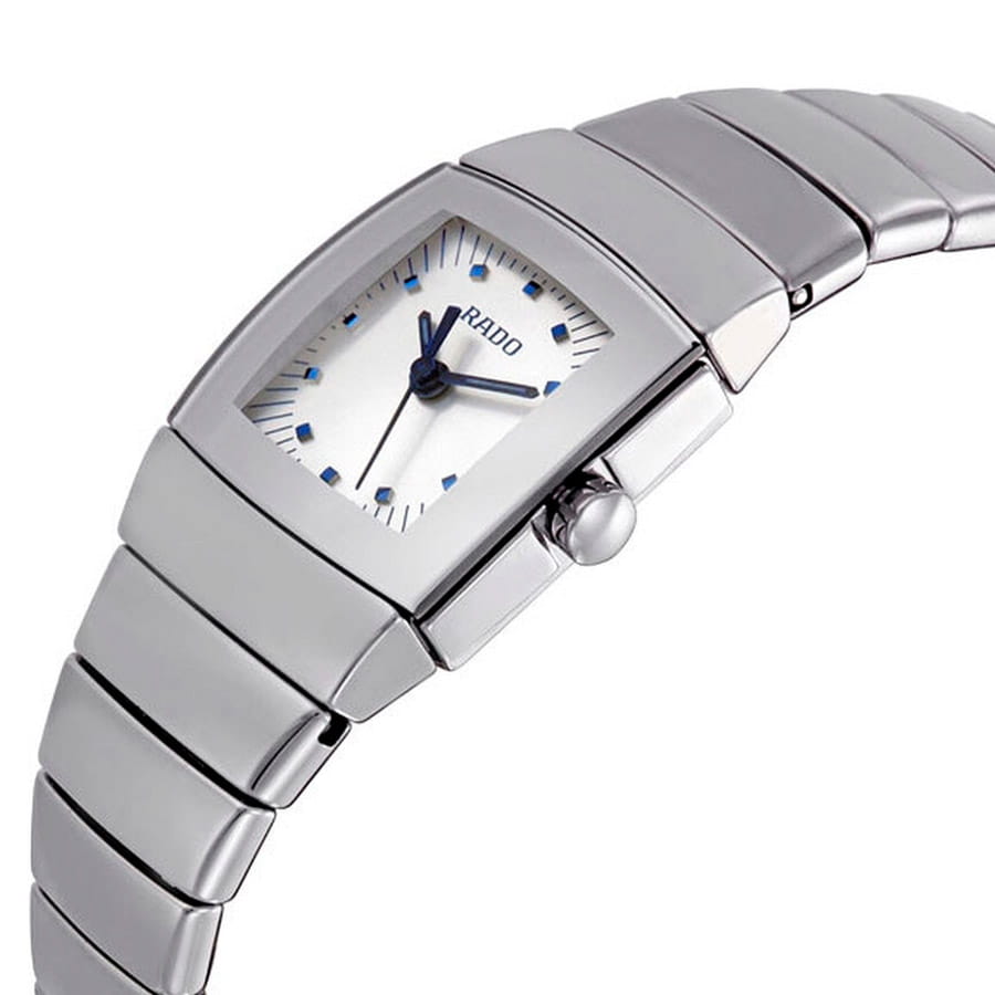Часы Rado Sintra R13722102, произведение искусства и технологическое чудо, станут прекрасным дополнением к коллекции. Эти швейцарские часы оснащены кварцевым механизмом. Корпус изготовлен из высокотехнологичной керамикиВысокотехнологичная керамикаИнновационный запатентованный Rado материал с гладкой или матовой поверхностью. Керамика за счёт кристаллической структуры обладает повышенной устойчивостью от возникновения царапин. Материал способен принимать температуру тела человека, обеспечивая невероятный комфорт при ношении.. Браслет изготовлен из CeramosCeramosМатериал являет собой инновационное сочетание высокотехнологичной керамики и сплава металла. Он объединяет керамическую устойчивость к царапинам и металлический роскошный блеск. . Сапфировое стеклоСапфировое стеклоПрочный и надёжный материал из кристалла сапфира синтетического происхождения, характеризующийся особой твёрдостью и устойчивостью к царапинам и повреждениям. устойчивое к появлению царапин, обладающее высокой прозрачностью. Класс водозащиты: 30 метров, позволит защитить корпус от случайных брызг или капель дождя.