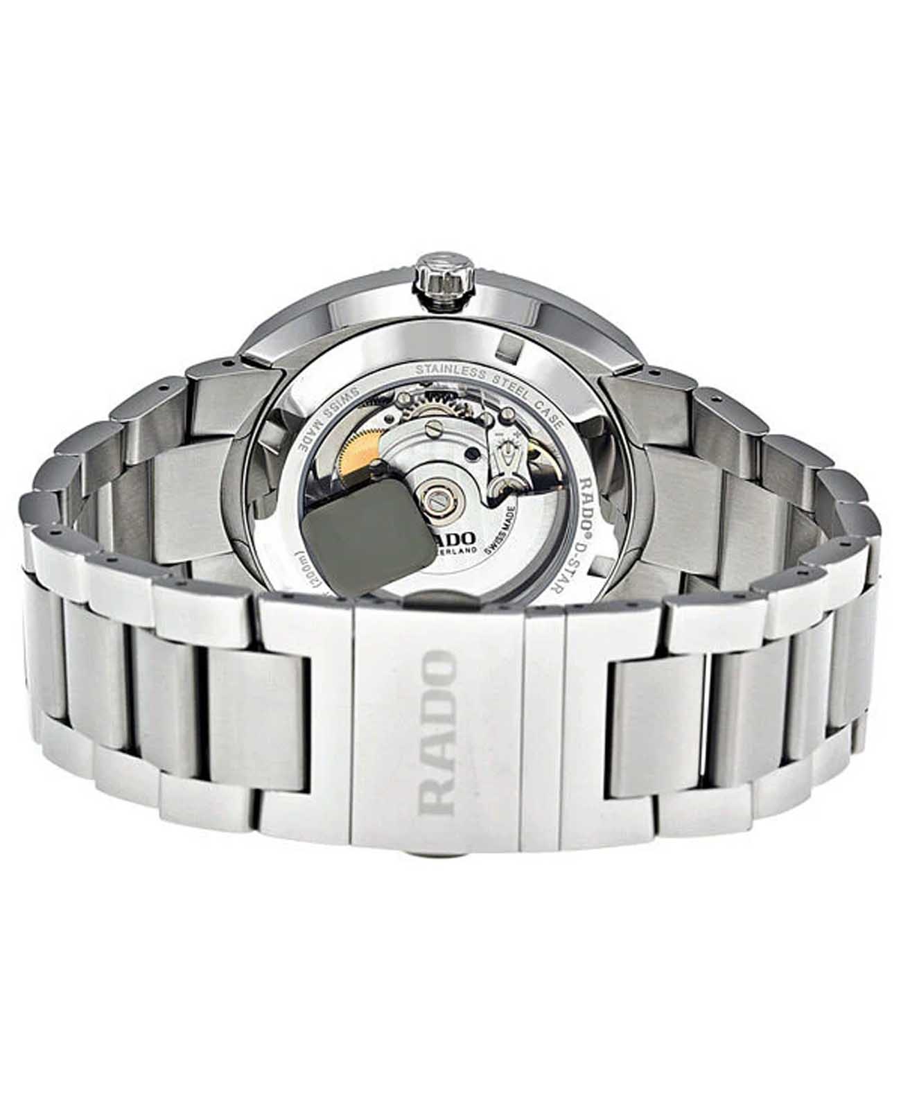 Мужские механические швейцарские часы с автоподзаводом Rado D-Star R15959103. Сапфировое стеклоСапфировое стеклоПрочный и надёжный материал из кристалла сапфира синтетического происхождения, характеризующийся особой твёрдостью и устойчивостью к царапинам и повреждениям. устойчивое к мелким механическим повреждениям. Корпус часов изготовлен из нержавеющей стали. БезельБезельВнешний ободок, закрепляющий стекло. В спортивных часах так называется поворотное кольцо с делениями на циферблате, выполняет роль таймера – замеряет отрезки времени на шкале. Неподвижный безель – элемент декора. Однонаправленно вращающийся безель на дайверских часах позволяет фиксировать моменты погружения и выныривания на поверхность. из высокотехнологичной керамикиВысокотехнологичная керамикаИнновационный запатентованный Rado материал с гладкой или матовой поверхностью. Керамика за счёт кристаллической структуры обладает повышенной устойчивостью от возникновения царапин. Материал способен принимать температуру тела человека, обеспечивая невероятный комфорт при ношении.. Окошко даты находится в положении 3 часа. Стрелки с люминесцентным покрытиемЛюминесцентное покрытиеПозволяет считывать показания времени в темноте. Производители наносят на стрелки, часовые индексы, безель или поверхность циферблата светонакопительный состав, дающий холодное свечение.. Класс водозащиты: 200 метров, позволит плавать, нырять и заниматься другими водными видами спорта. Браслет из стали и высокотехнологичной керамикиВысокотехнологичная керамикаИнновационный запатентованный Rado материал с гладкой или матовой поверхностью. Керамика за счёт кристаллической структуры обладает повышенной устойчивостью от возникновения царапин. Материал способен принимать температуру тела человека, обеспечивая невероятный комфорт при ношении. на раскладной застёжкеРаскладная застёжкаТакой тип застёжки используется только на браслетах из металла. Она никогда не раскрывается полностью, происходит разделение на 2 и более частей. Раскладывающая застёжка снизит вероятность потери часов к минимуму..