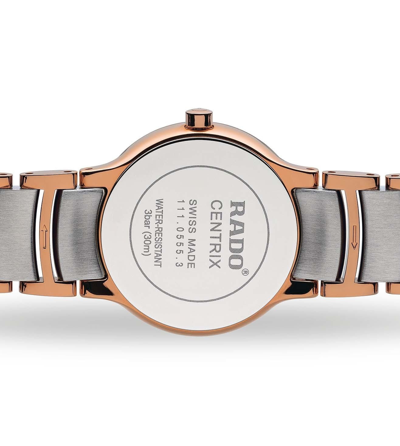Женские швейцарские кварцевые часы из коллекции Centrix являют собой современный элемент роскошного стиля. Аксессуар в коричневом цвете станет достойным дополнением к образу. Надёжный корпус из хирургической стали 316L с PVD-покрытиемPVDУльтратонкое покрытие наносится в технике вакуумного напыления, сочетает в себе нитрид титана особой прочности со слоем золота или оксида хрома. Несёт в себе декоративную или защитную функцию.. Браслет имеет вставки из высокотехнологичной керамикиВысокотехнологичная керамикаИнновационный запатентованный Rado материал с гладкой или матовой поверхностью. Керамика за счёт кристаллической структуры обладает повышенной устойчивостью от возникновения царапин. Материал способен принимать температуру тела человека, обеспечивая невероятный комфорт при ношении.. Износоустойчивое PVD-покрытиеPVDУльтратонкое покрытие наносится в технике вакуумного напыления, сочетает в себе нитрид титана особой прочности со слоем золота или оксида хрома. Несёт в себе декоративную или защитную функцию.. Сапфировое стеклоСапфировое стеклоПрочный и надёжный материал из кристалла сапфира синтетического происхождения, характеризующийся особой твёрдостью и устойчивостью к царапинам и повреждениям.. Апертура даты. Диаметр корпуса: 28 мм.Водозащита: 30 метров, позволит защитить корпус от случайных брызг или капель дождя Производство и сборка: Швейцария.