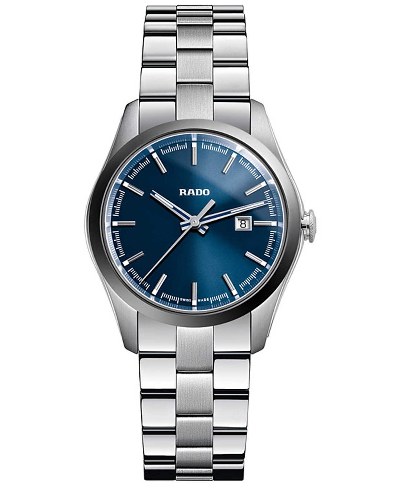 Женские швейцарские часы с надёжным кварцевым механизмом. Rado Hyperchrome R32110203. Сапфировое стеклоСапфировое стеклоПрочный и надёжный материал из кристалла сапфира синтетического происхождения, характеризующийся особой твёрдостью и устойчивостью к царапинам и повреждениям. устойчивое к мелким механическим повреждениям. Корпус и браслет часов изготовлены из нержавеющей стали. Стальной браслет на раскладной застёжкеРаскладная застёжкаТакой тип застёжки используется только на браслетах из металла. Она никогда не раскрывается полностью, происходит разделение на 2 и более частей. Раскладывающая застёжка снизит вероятность потери часов к минимуму.. Окошко даты находится в положении 3 часа. Стрелки и метки с люминесцентным покрытиемЛюминесцентное покрытиеПозволяет считывать показания времени в темноте. Производители наносят на стрелки, часовые индексы, безель или поверхность циферблата светонакопительный состав, дающий холодное свечение.. Класс водозащиты: 50 метров, позволит защитить корпус от случайных брызг или капель дождя.