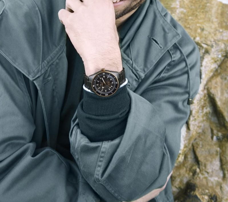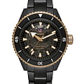 Премиальная модель обладает винтажным характером, чёрный циферблат обращает наше внимание на оригинальные стрелки в виде меча и стрелы. Часы обладают высокими показателями водонепроницаемости - сохранение герметичности до 20 бар, что стало возможным благодаря завинчивающейся задней крышке и заводной головке. Автоподзавод. Антибликовая обработка сапфирового стекла. Корпус из керамики, безельБезельВнешний ободок, закрепляющий стекло. В спортивных часах так называется поворотное кольцо с делениями на циферблате, выполняет роль таймера – замеряет отрезки времени на шкале. Неподвижный безель – элемент декора. Однонаправленно вращающийся безель на дайверских часах позволяет фиксировать моменты погружения и выныривания на поверхность. из высокотехнологичной керамикиВысокотехнологичная керамикаИнновационный запатентованный Rado материал с гладкой или матовой поверхностью. Керамика за счёт кристаллической структуры обладает повышенной устойчивостью от возникновения царапин. Материал способен принимать температуру тела человека, обеспечивая невероятный комфорт при ношении.. Прочный керамический браслет. Отображение числа. Диаметр корпуса: 43 мм.
