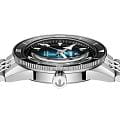 Captain Cook Automatic — это гармоничное сочетание точности и стиля, созданное для тех, кто ценит надёжность в любых условиях. Полированный корпус диаметром 39 мм выполнен из нержавеющей стали и дополнен вращающимся безелем из того же материала с чёрной керамической вставкой и белыми маркерами. Треугольный индекс в положении 12 часов выделен слоем люминесцентного покрытияЛюминесцентное покрытиеПозволяет считывать показания времени в темноте. Производители наносят на стрелки, часовые индексы, безель или поверхность циферблата светонакопительный состав, дающий холодное свечение. Super-LumiNova®, что обеспечивает отличную читаемость даже в темноте. Часы защищены сапфировым стекломСапфировое стеклоПрочный и надёжный материал из кристалла сапфира синтетического происхождения, характеризующийся особой твёрдостью и устойчивостью к царапинам и повреждениям. коробчатой формы, изготовленным при температуре свыше 2000 °C и покрытым антибликовым слоем с обеих сторон. Это обеспечивает исключительную прозрачность и устойчивость к царапинам — по твёрдости оно уступает только алмазу. Сердце модели — калибр R763 с автоподзаводом, разработанный для максимальной надёжности. Механизм имеет 25 драгоценных камней, регулируется в пяти положениях и оснащён антимагнитной спиралью Nivachron™Nivachron™Специально разработанный инновационный сплав Nivachron™ повышает устойчивость часов к воздействию магнитных полей., повышающей стабильность хода. Запас хода составляет внушительные 80 часов, что делает часы идеальными для активного образа жизни. Циферблат с градиентом от чёрного к бирюзовому украшен индексами и стрелками из рутениевого цвета, покрытыми белым люминесцентным составом Super-LumiNova® для отличной читаемости в темноте. Окошко даты расположено в положении 3 часов, а на задней крышке выгравирован символический якорь — знак принадлежности к коллекции Captain Cook. Браслет в стиле «рисовые зёрна» выполнен из комбинированной стали с полированной и матовой отделкой и закрывается трёхсгибной застёжкой из нержавеющей стали, обеспечивающей комфорт и уверенную фиксацию на запястье. Часы водонепроницаемы до 300 метров (), что делает их готовыми к любым приключениям — будь то подводное плавание или деловая встреча. Captain Cook Automatic сочетает в себе швейцарское мастерство, современные технологии и элегантный дизайн, становясь универсальным аксессуаром для любого случая.