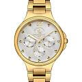 Женские кварцевые часы Santa Barbara Polo & Racquet Club — это элегантный аксессуар, подчеркивающий романтичное настроение. Корпус диаметром 35 мм и высотой 42 мм выполнен из латуни с IP-покрытиемIP-покрытиеМетод ионного напыления. Демонстрирует повышенную устойчивость к истиранию, окислению и химическим веществам. Под воздействием высокого давления и температуры около 1500°C молекулы металла надёжно соединяются с частицами корпуса часов.. Циферблат серебристого цвета с гильошированной текстурой украшен фирменным логотипом и накладными метками в виде точек, а также арабской цифрой 12. Указатели дня недели и даты вынесены на отдельные субциферблаты, также присутствует индикация 24-часового формата времени. Циферблат защищён минеральным стекломМинеральное стеклоМинеральное стекло представляет собой искусственно выращенный минерал кварца. Такое стекло отличается особой устойчивостью к повреждениям и царапинам. Уступает по некоторым качествам сапфировому стеклу.. Механизм — кварцевый калибр VX3JE1. Часы оснащены браслетом из нержавеющей стали с IP-покрытиемIP-покрытиеМетод ионного напыления. Демонстрирует повышенную устойчивость к истиранию, окислению и химическим веществам. Под воздействием высокого давления и температуры около 1500°C молекулы металла надёжно соединяются с частицами корпуса часов. на раскладной застёжкеРаскладная застёжкаТакой тип застёжки используется только на браслетах из металла. Она никогда не раскрывается полностью, происходит разделение на 2 и более частей. Раскладывающая застёжка снизит вероятность потери часов к минимуму.. Водонепроницаемость 50 м позволяет использовать часы в повседневных условиях. Идеальный выбор для тех, кто ценит женственность, стиль и качество.