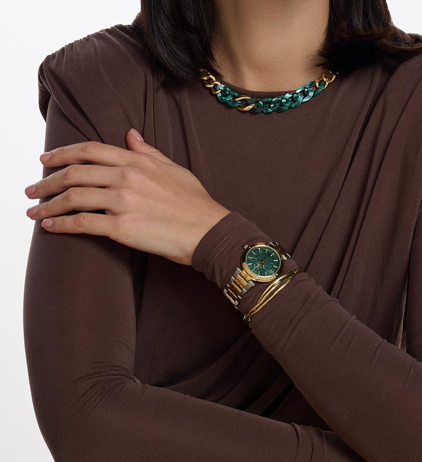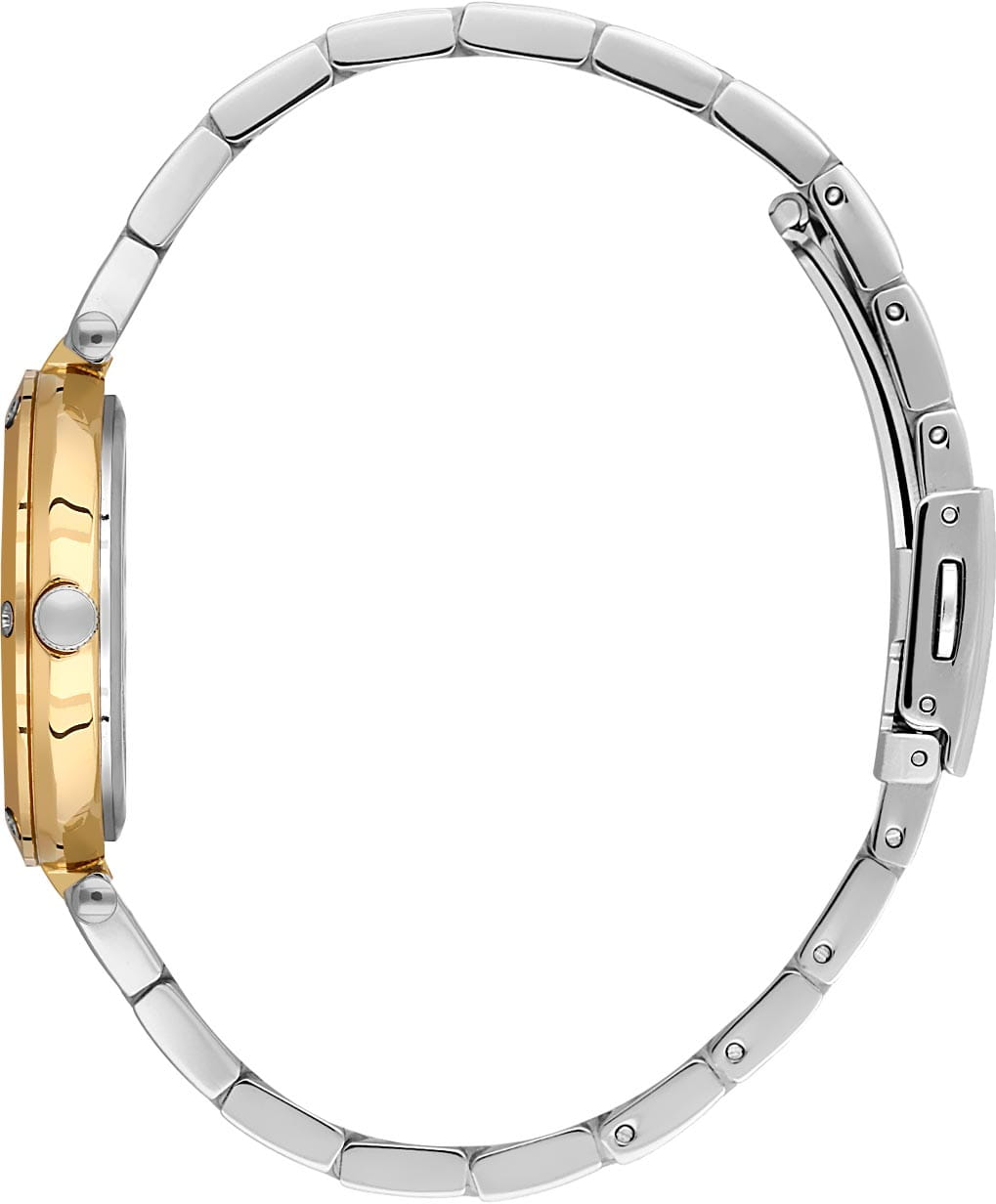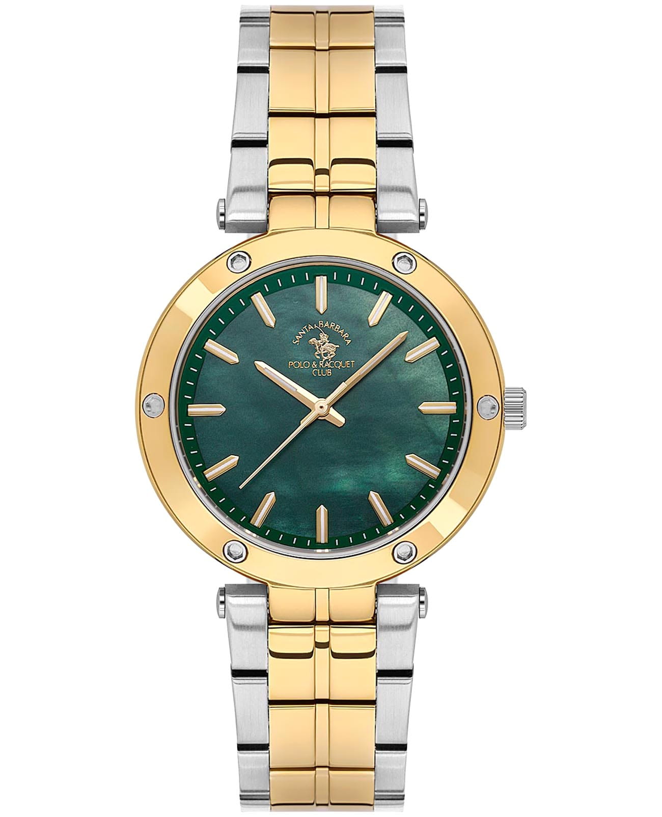 Женские кварцевые Santa Barbara Polo & Racquet Club SB.1.10594-5 — воплощение элегантности и технического совершенства. Изысканный корпус из нержавеющей стали с IP-покрытиемIP-покрытиеМетод ионного напыления. Демонстрирует повышенную устойчивость к истиранию, окислению и химическим веществам. Под воздействием высокого давления и температуры около 1500°C молекулы металла надёжно соединяются с частицами корпуса часов. золотистого цвета, диаметром 34 мм, что делает их устойчивыми к внешним воздействиям и придает благородный вид. Стрелки и метки с люминесцентным покрытиемЛюминесцентное покрытиеПозволяет считывать показания времени в темноте. Производители наносят на стрелки, часовые индексы, безель или поверхность циферблата светонакопительный состав, дающий холодное свечение., обеспечивающим хорошую читаемость в темноте. Изящный циферблат защищён минеральным стекломМинеральное стеклоМинеральное стекло представляет собой искусственно выращенный минерал кварца. Такое стекло отличается особой устойчивостью к повреждениям и царапинам. Уступает по некоторым качествам сапфировому стеклу., устойчивое к царапинам и механическим повреждениям. Браслет из стали с частичным IP-покрытиемIP-покрытиеМетод ионного напыления. Демонстрирует повышенную устойчивость к истиранию, окислению и химическим веществам. Под воздействием высокого давления и температуры около 1500°C молекулы металла надёжно соединяются с частицами корпуса часов. на раскладной застёжкеРаскладная застёжкаТакой тип застёжки используется только на браслетах из металла. Она никогда не раскрывается полностью, происходит разделение на 2 и более частей. Раскладывающая застёжка снизит вероятность потери часов к минимуму. обеспечивает комфортное и безопасное ношение. Декоративный безельБезельВнешний ободок, закрепляющий стекло. В спортивных часах так называется поворотное кольцо с делениями на циферблате, выполняет роль таймера – замеряет отрезки времени на шкале. Неподвижный безель – элемент декора. Однонаправленно вращающийся безель на дайверских часах позволяет фиксировать моменты погружения и выныривания на поверхность. украшен винтами. Водонепроницаемость 50 метров позволит защитить корпус от случайных брызг или капель дождя. Идеальный выбор для тех, кто ценит элегантный дизайн и качество.