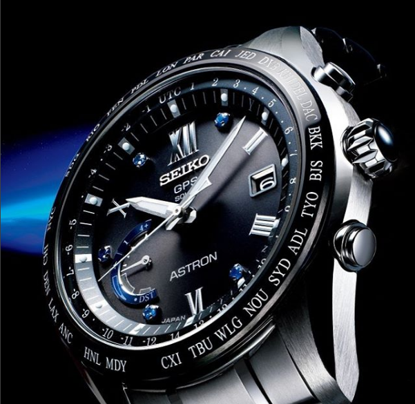 Успешные люди, желающие идти в ногу со временем, выбирают инновационные и надежные часы марки Seiko. Механизм Seiko 8Х53 работает от солнечной энергии. Часы со встроенным GPS-приемником определяют часовой пояс, дату и точное время. Функция сохранения энергии, запас хода до 2 лет. Ретроградный индикатор отображает: состояние зарядки батареи, режим ''В полете'', включение/отключение летнего времени, способ приема GPS-сигнала и день недели. Керамический безель. Заводная головка с защитой. Завинчивающаяся задняя крышка. Корпус и браслет выполнены из титана. Черный циферблат инкрустирован 5-ю сапфирами. Сапфировое стекло с антибликовым покрытием. Водозащита 100м.