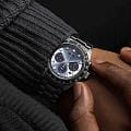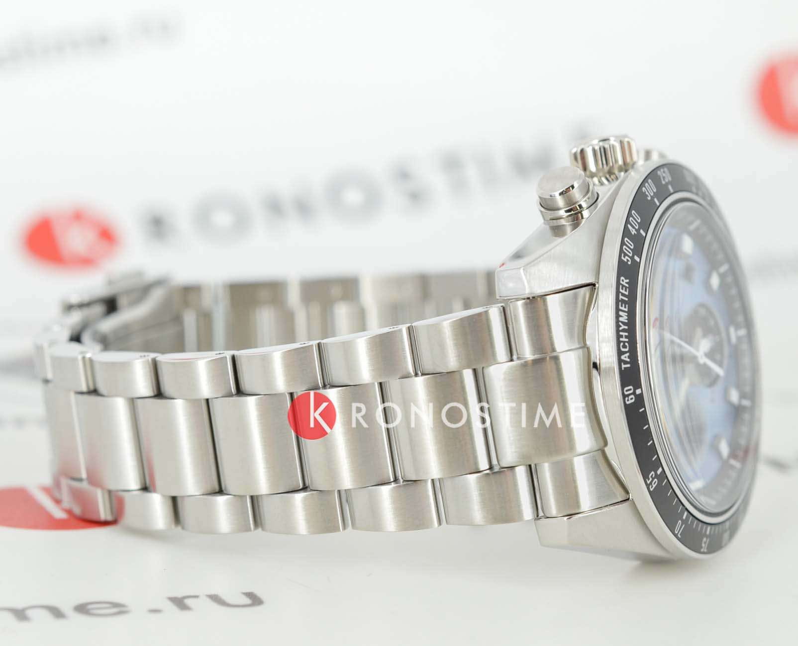 Модель Seiko SSC935P1 из коллекции Prospex Speedtimer — это спортивный солнечный хронограф с выразительным дизайном и высокой функциональностью. Корпус диаметром 41,4 мм выполнен из нержавеющей стали и оснащён завинчивающейся задней крышкой и заводной головкой, обеспечивая водозащиту до 100 метров. Фиксированный алюминиевый тахиметрический безельТахиметрРазмеченная шкала, располагается на ободке или безеле часов. Тахиметр позволяет рассчитать скорость на определённом участке пути, расстояние измеряется в километрах или милях. позволяет производить измерения скорости. Циферблат насыщенного голубого оттенка с солнечным финишем дополнен тремя чёрными счётчиками: 24-часовым, малой секундной стрелкой и хронографом на 60 минут. Стрелки и индексы покрыты люминесцентным покрытиемЛюминесцентное покрытиеПозволяет считывать показания времени в темноте. Производители наносят на стрелки, часовые индексы, безель или поверхность циферблата светонакопительный состав, дающий холодное свечение. LumiBrite для превосходной видимости в тёмное время суток. Защиту циферблата обеспечивает выпуклое сапфировое стеклоСапфировое стеклоПрочный и надёжный материал из кристалла сапфира синтетического происхождения, характеризующийся особой твёрдостью и устойчивостью к царапинам и повреждениям. с внутренним антибликовым покрытиемАнтибликовое покрытиеСлой оксида металла в 0,13-0,3 микрон, благодаря которому стекло часов не бликует и не отражает свет. Антибликовое покрытие уменьшает отражение света в 10 раз, обеспечивая отличную читаемость показателей циферблата., устойчивое к царапинам и бликам. Внутри установлен солнечный кварцевый калибр V192 с функциями хронографаХронографФункция позволяет измерять отрезки времени с особой точностью: часы, минуты, секунды. Верным признаком хронографа является наличие на циферблате 3 дополнительных окошек-счётчиков., индикацией 24 часов, даты и запаса хода. Полного заряда хватает до 6 месяцев автономной работы. Браслет из нержавеющей стали надёжно фиксируется при помощи раскладной застёжкиРаскладная застёжкаТакой тип застёжки используется только на браслетах из металла. Она никогда не раскрывается полностью, происходит разделение на 2 и более частей. Раскладывающая застёжка снизит вероятность потери часов к минимуму. с кнопками.