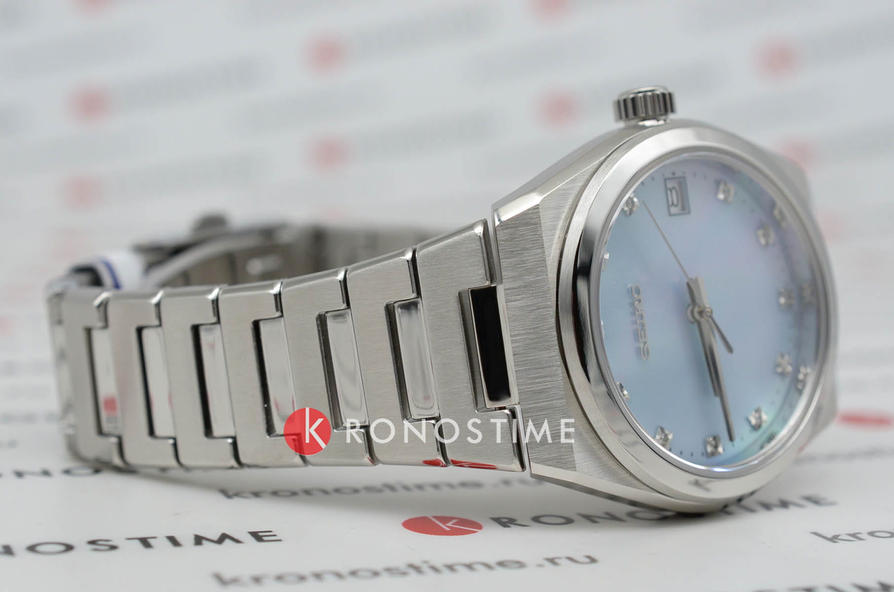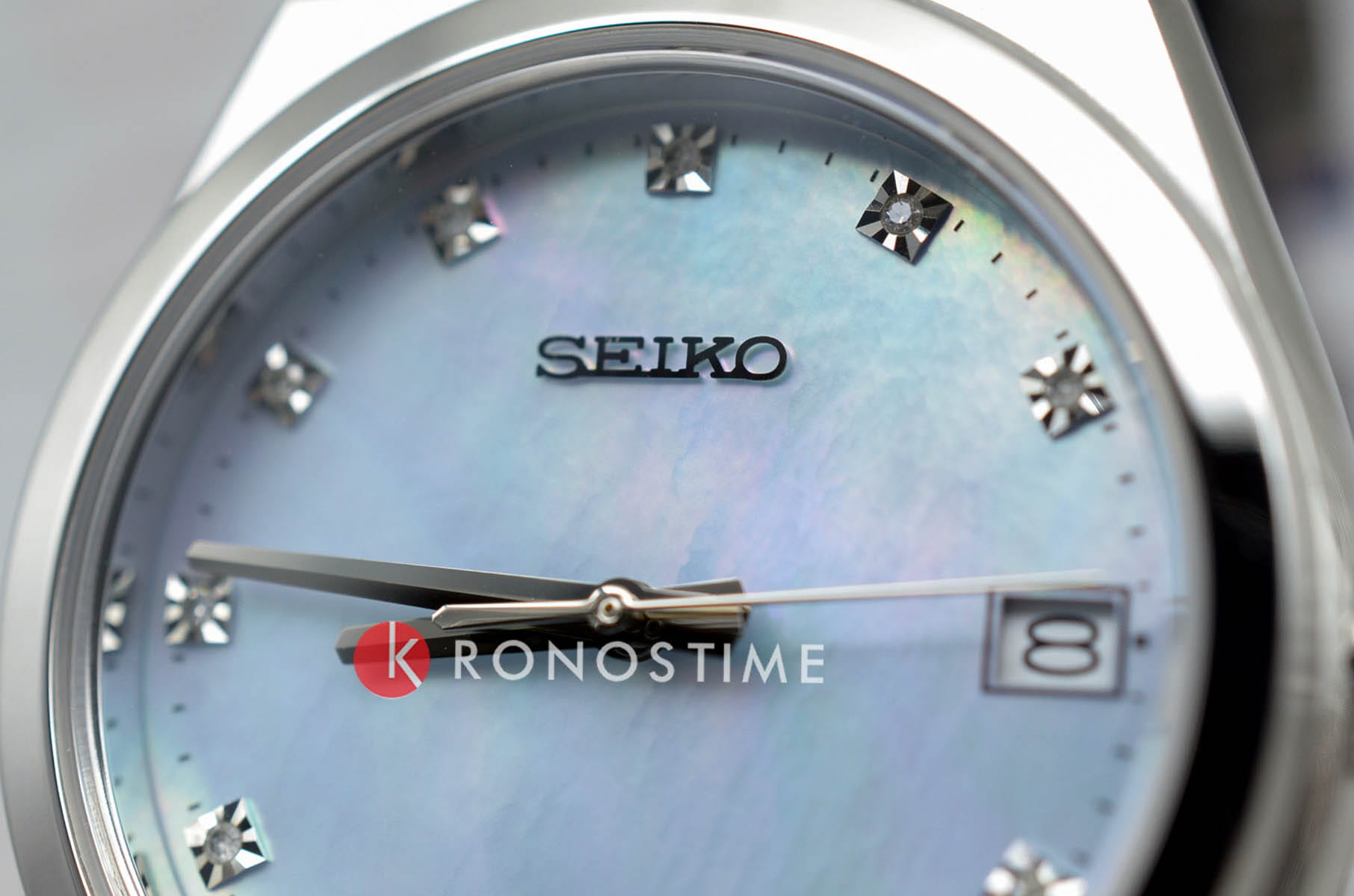 Женские японские часы Seiko Conceptual Series Dress SUR603P1 c кварцевым механизмом с высокой точностью с калибром 6N42. Сапфировое стеклоСапфировое стеклоПрочный и надёжный материал из кристалла сапфира синтетического происхождения, характеризующийся особой твёрдостью и устойчивостью к царапинам и повреждениям. с антибликовым покрытиемАнтибликовое покрытиеСлой оксида металла в 0,13-0,3 микрон, благодаря которому стекло часов не бликует и не отражает свет. Антибликовое покрытие уменьшает отражение света в 10 раз, обеспечивая отличную читаемость показателей циферблата. , устойчивое к появлению царапин, обладающее высокой прозрачностью. Класс водозащиты: 100 метров, позволит плавать, нырять и заниматься другими водными видами спорта. Корпус и браслет изготовлены из нержавеющей стали. Браслет с раскладной застёжкойРаскладная застёжкаТакой тип застёжки используется только на браслетах из металла. Она никогда не раскрывается полностью, происходит разделение на 2 и более частей. Раскладывающая застёжка снизит вероятность потери часов к минимуму.. Голубой циферблат украшен бриллиантами. Окошко даты находится в позиции 3 часов. Seiko — это гармония изящного дизайна и технологичной надёжности, компактный и стильный выбор для повседневной классики.