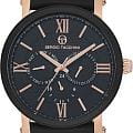 Мужские кварцевые часы Sergio Tacchini из коллекции City — это стильный аксессуар с классическими чертами для уверенного покорения городской жизни. Корпус диаметром 46 мм выполнен из нержавеющей стали 316L с PVD-покрытиемPVDУльтратонкое покрытие наносится в технике вакуумного напыления, сочетает в себе нитрид титана особой прочности со слоем золота или оксида хрома. Несёт в себе декоративную или защитную функцию.. Циферблат чёрного цвета оформлен индексами и стрелками. Указатели дня недели и даты вынесены на отдельные субциферблаты, также присутствует индикация 24-часового формата времени. Стрелки с люминесцентным покрытиемЛюминесцентное покрытиеПозволяет считывать показания времени в темноте. Производители наносят на стрелки, часовые индексы, безель или поверхность циферблата светонакопительный состав, дающий холодное свечение., обеспечивающим хорошую читаемость в темноте. Циферблат защищён минеральным стекломМинеральное стеклоМинеральное стекло представляет собой искусственно выращенный минерал кварца. Такое стекло отличается особой устойчивостью к повреждениям и царапинам. Уступает по некоторым качествам сапфировому стеклу. с антибликовым покрытиемАнтибликовое покрытиеСлой оксида металла в 0,13-0,3 микрон, благодаря которому стекло часов не бликует и не отражает свет. Антибликовое покрытие уменьшает отражение света в 10 раз, обеспечивая отличную читаемость показателей циферблата.. Механизм — японский кварцевый калибр Miyota 6P29. Часы оснащены кожаным ремешком чёрного цвета с стандартной застёжкой. Водонепроницаемость 100 м позволяет использовать часы в повседневных условиях. Идеальный выбор для тех, кто ценит функциональность и элегантный дизайн.